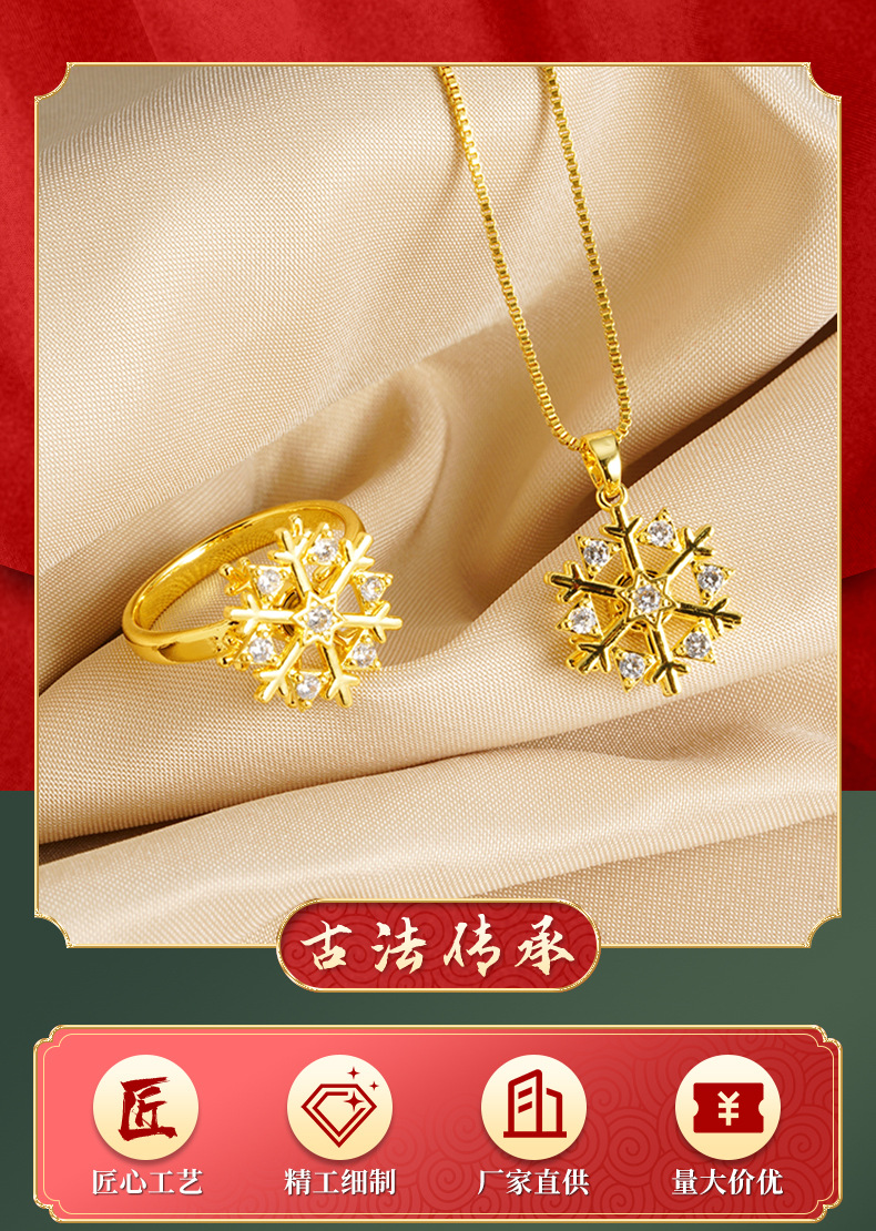 Vietnam oro arado flocos de nieve brillante collar micro diamantes flash dulce anillo Yiwu joyería suministro directo de fábrica