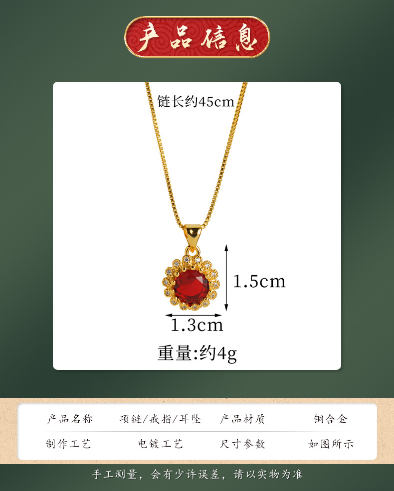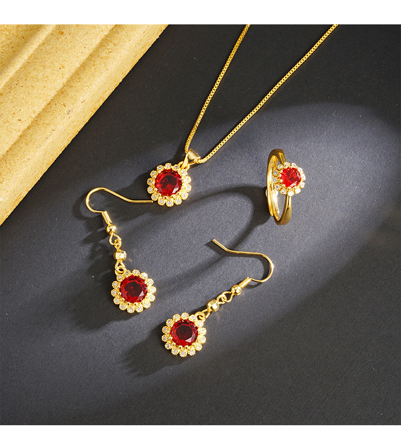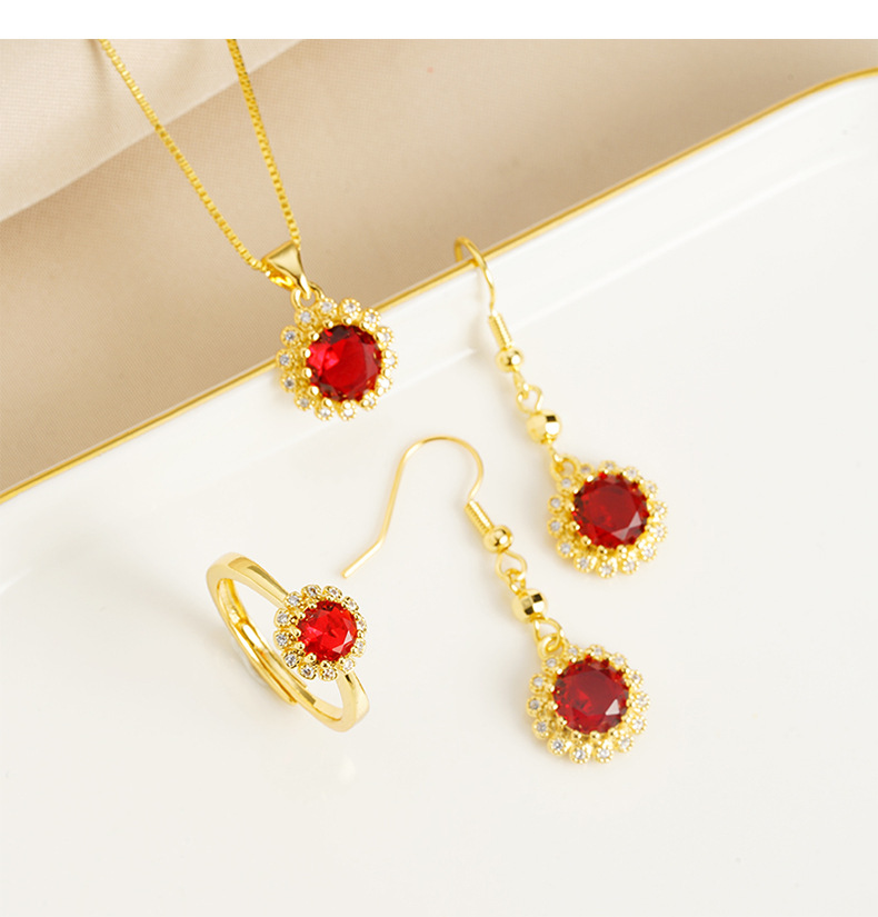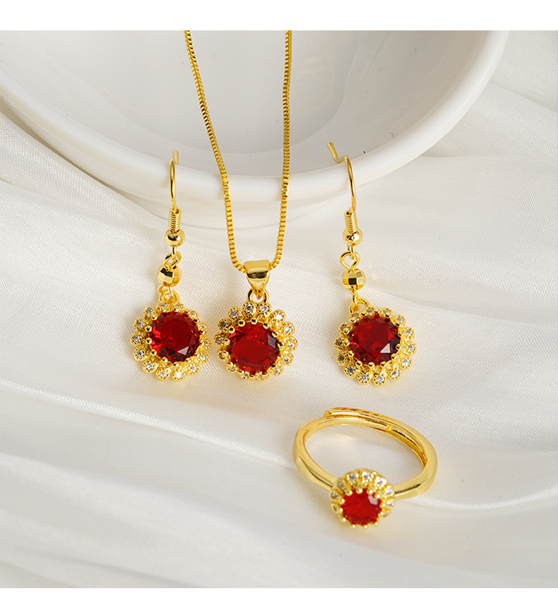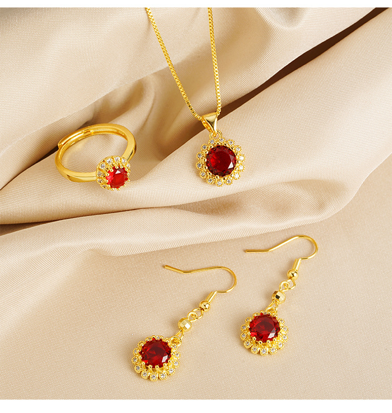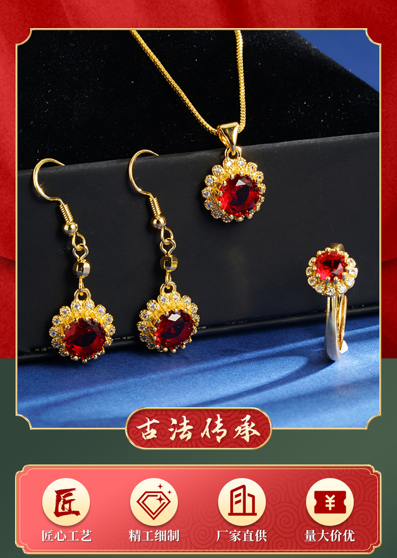 Collar de rubi de oro de arena de Vietnam, anillo de orejas, joyas recubiertas de oro antiguas, fábrica directa al por mayor