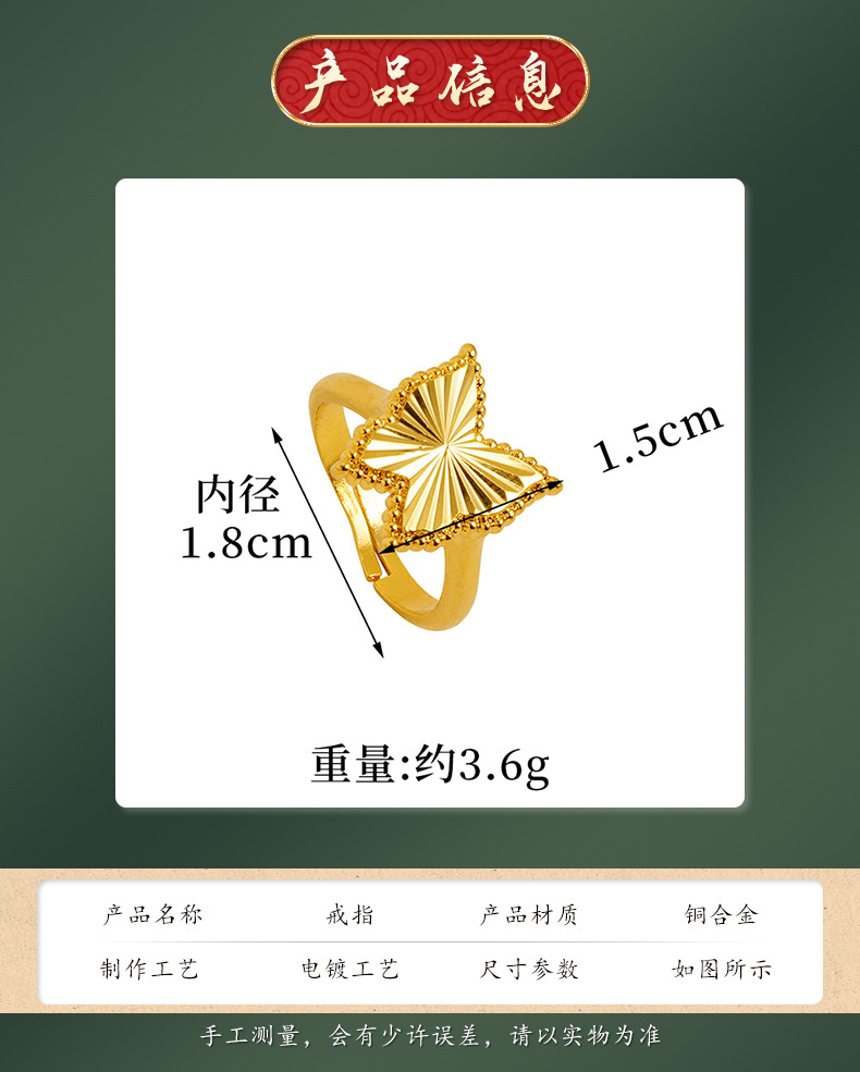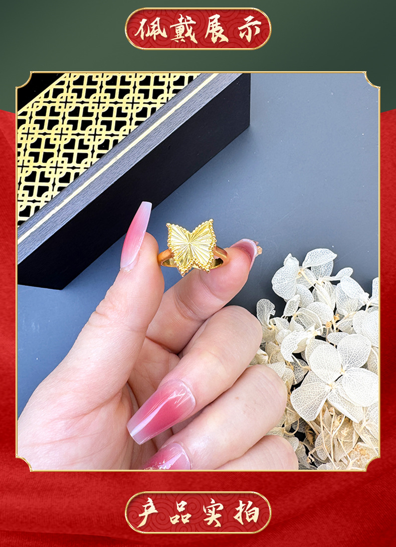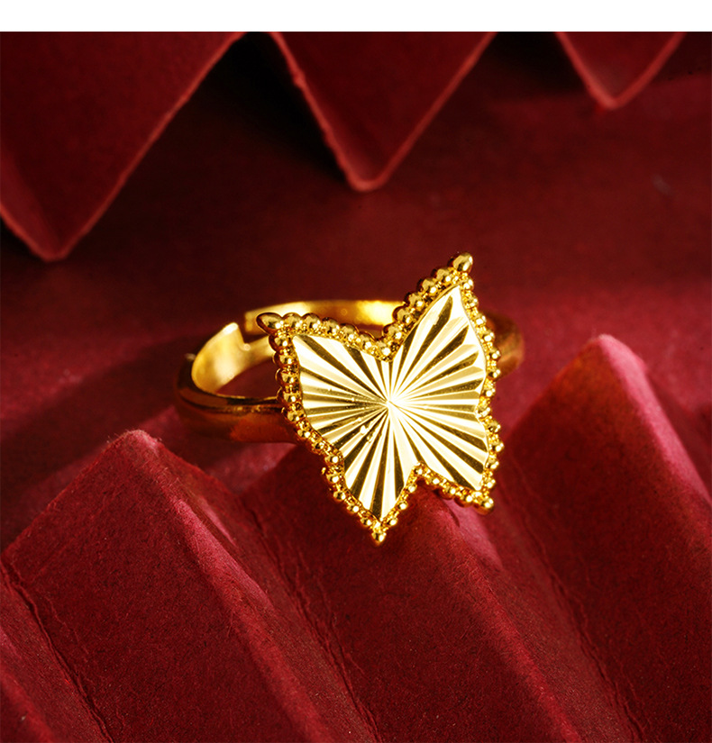Nuevos productos populares anillos de mariposa de oro de arena de Vietnam, automóviles de patrón horizontal no se desvanecen, fábrica de joyería Yiwu suministro directo
