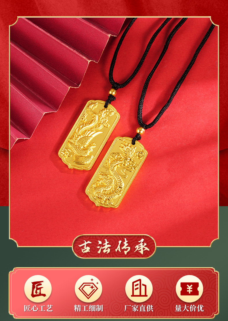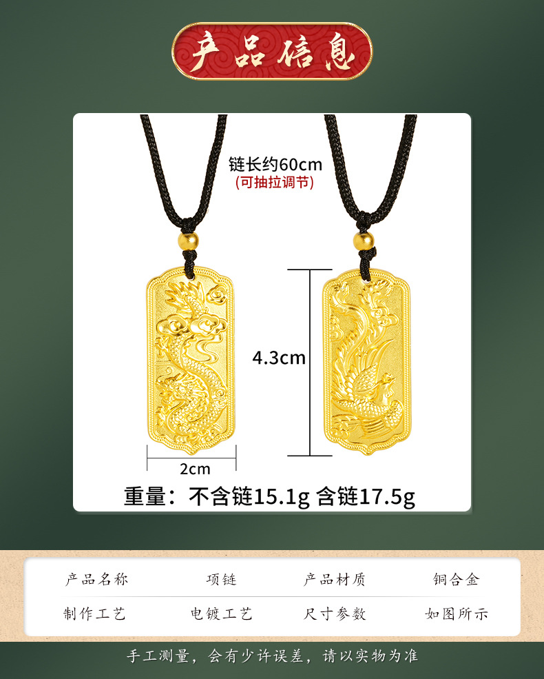 Dragón de oro y collar de Phoenix Lucky marca aleación de cobre largo tiempo no decoloración suerte colgante estilo chino hombres y mujeres viven caliente
