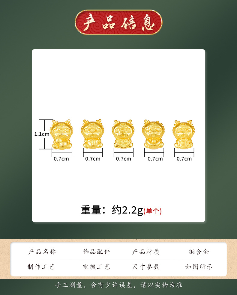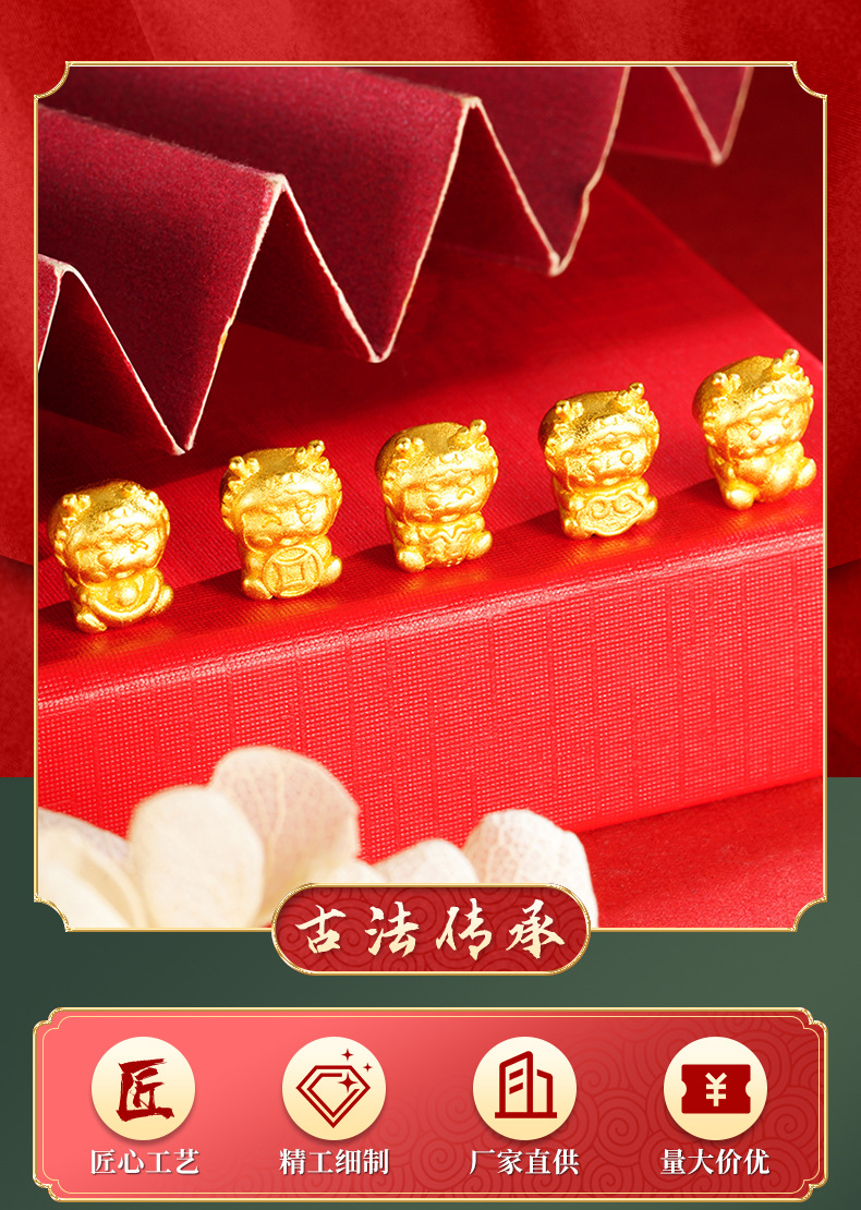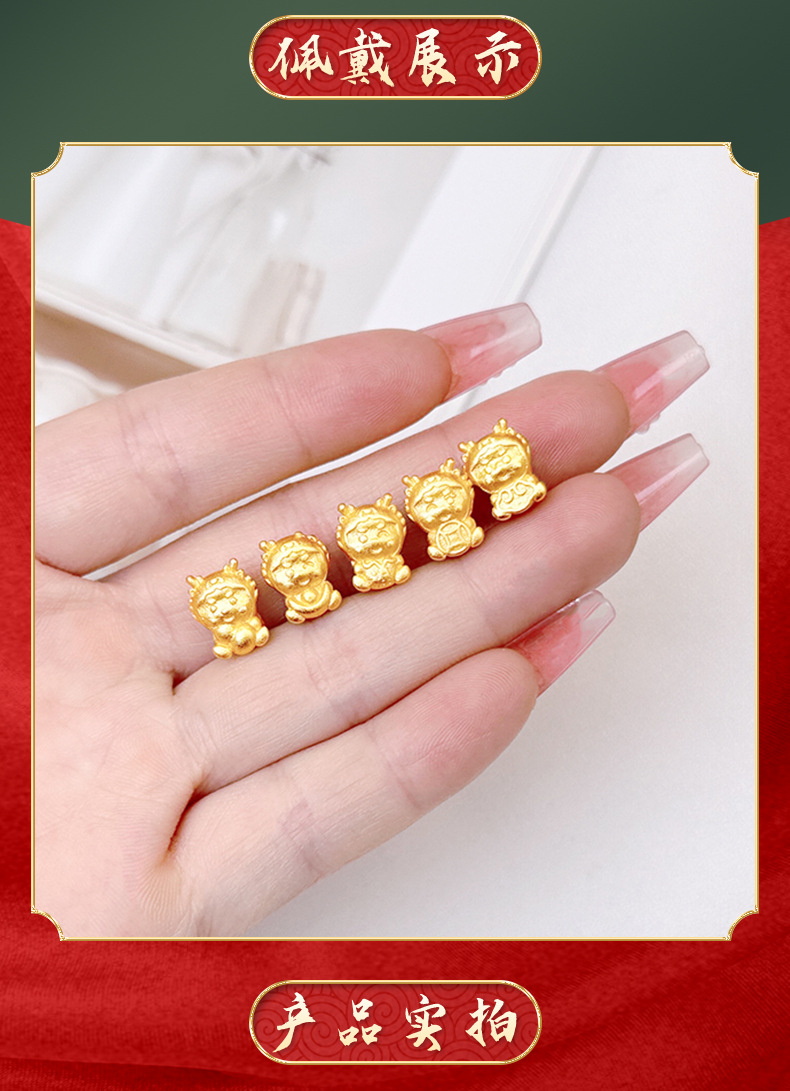 Arena antigua oro Zodiaco dragón DIY accesorios de joyería tridimensional imitación oro 3D afortunado lindo dragón cien accesorios a juego al por mayor