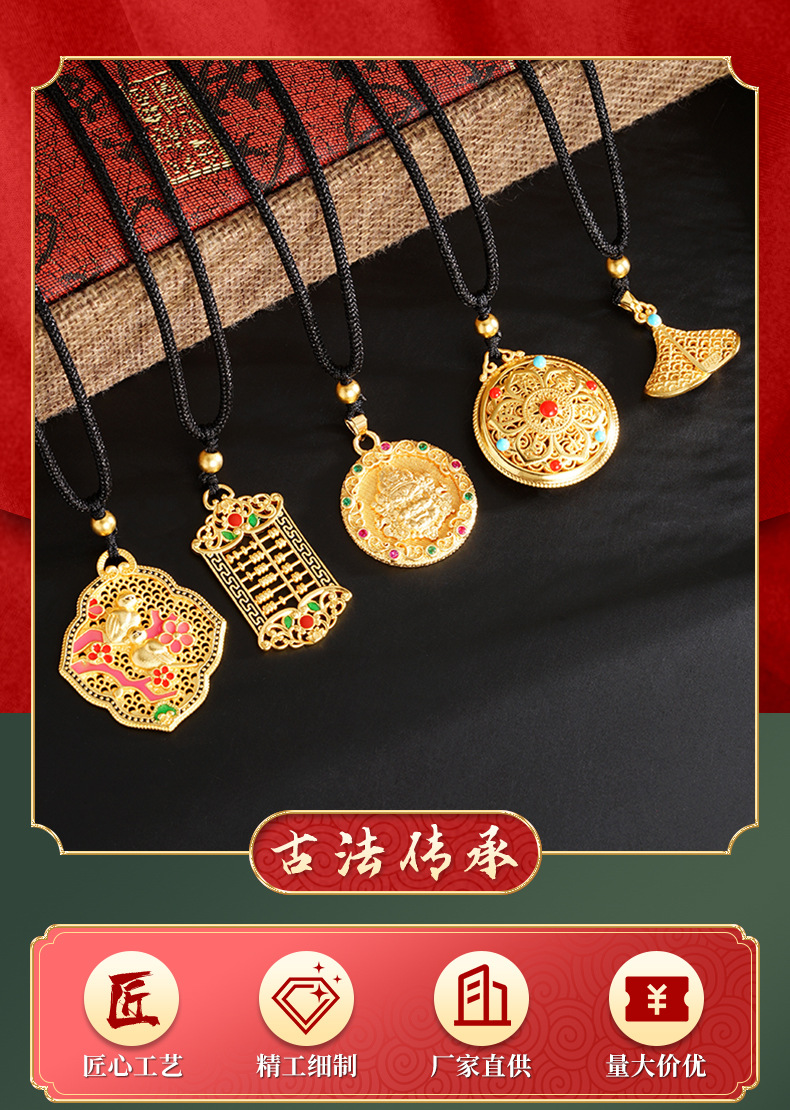 Nuevo multi-estilo de arena collar de oro Abacus bestia koi fu carácter colgante de los hombres y las mujeres de la joyería del estilo chino fábrica de suministro directo