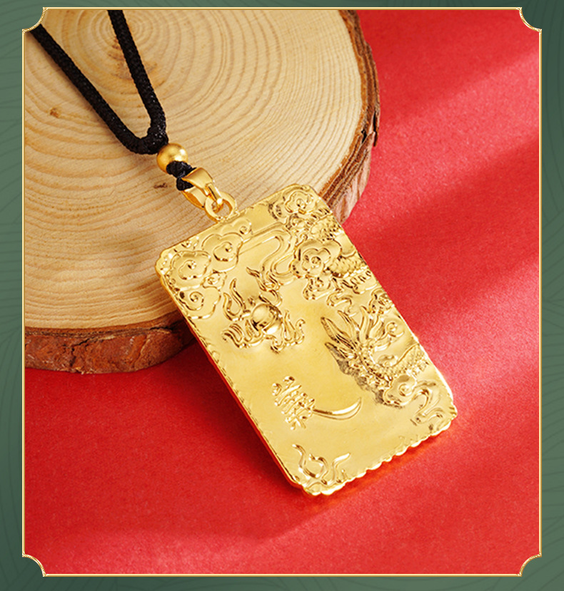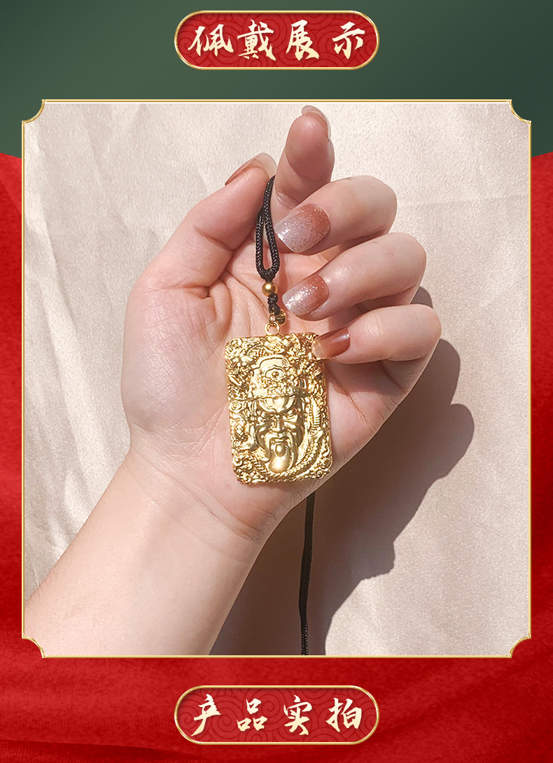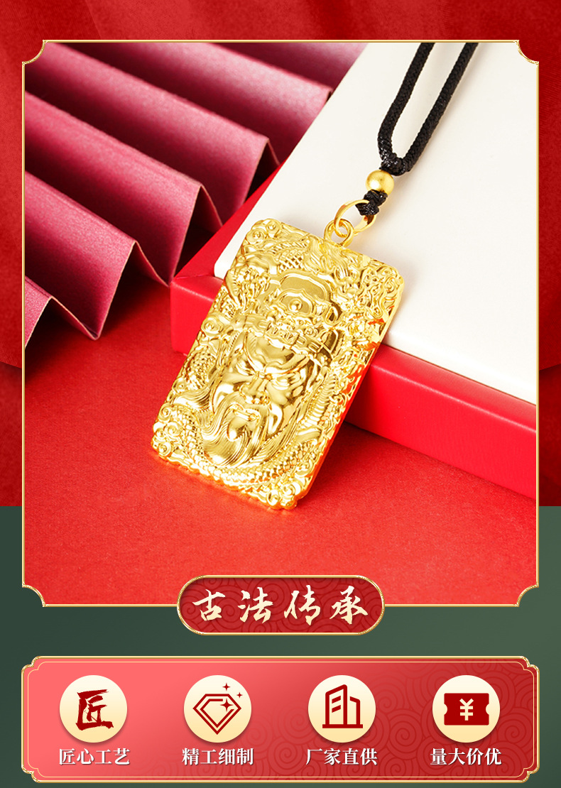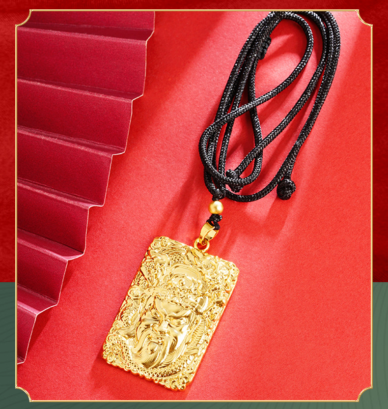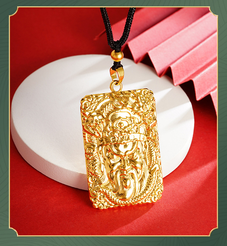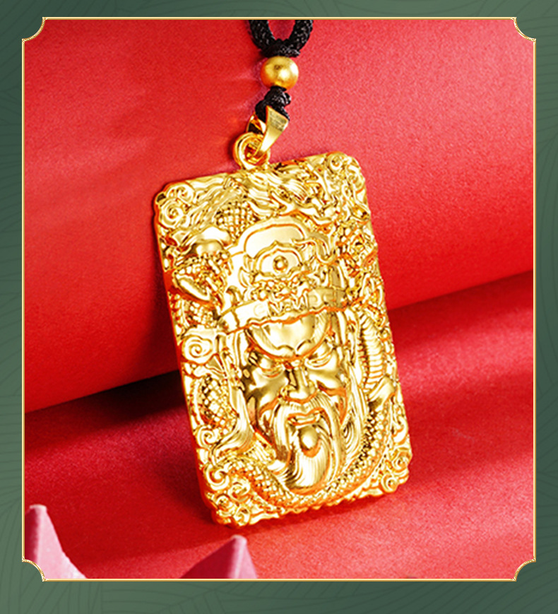 Estilo antiguo Arena de oro estilo chino Guan Gong collar cuadrado de los hombres dominantes colgante tridimensional Guan er Ye tag joyería al por mayor
