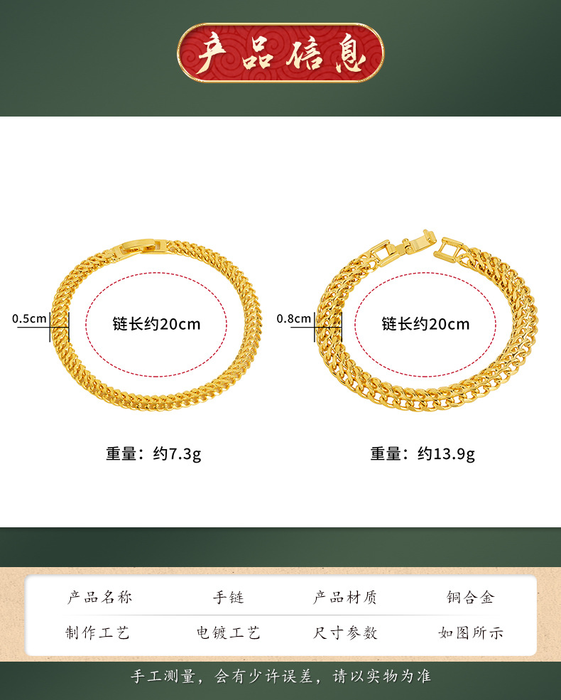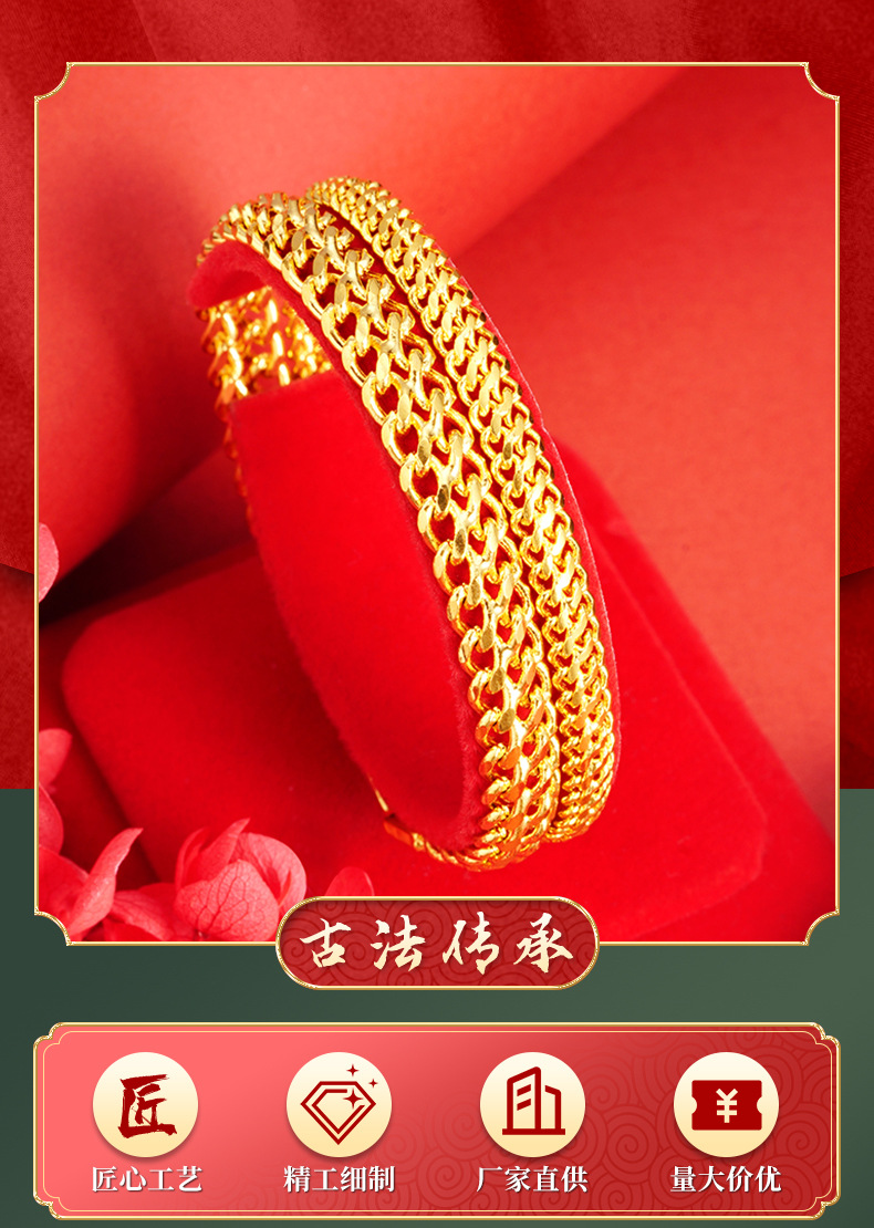 Vietnam arena oro quilla pulsera imitación oro hombres y mujeres dominante cadena pulsera hebilla suministro de fábrica todo-fósforo estilo chino