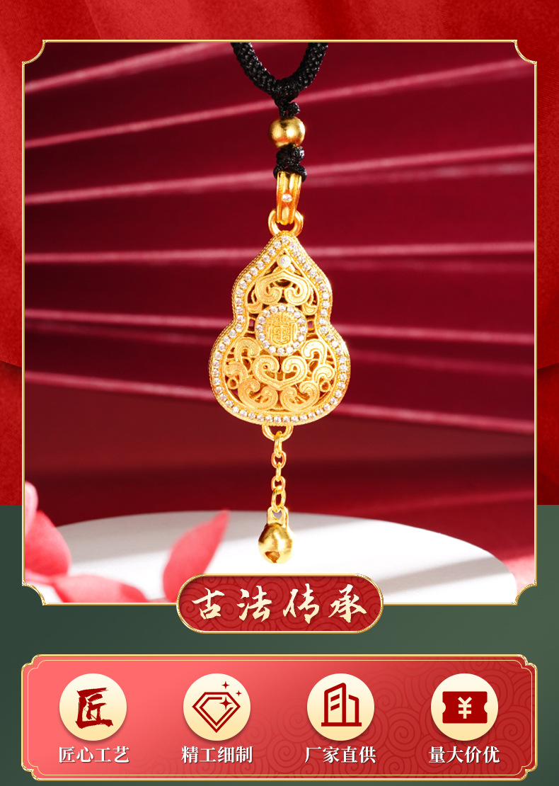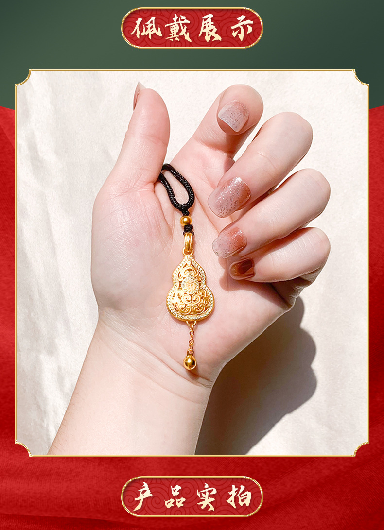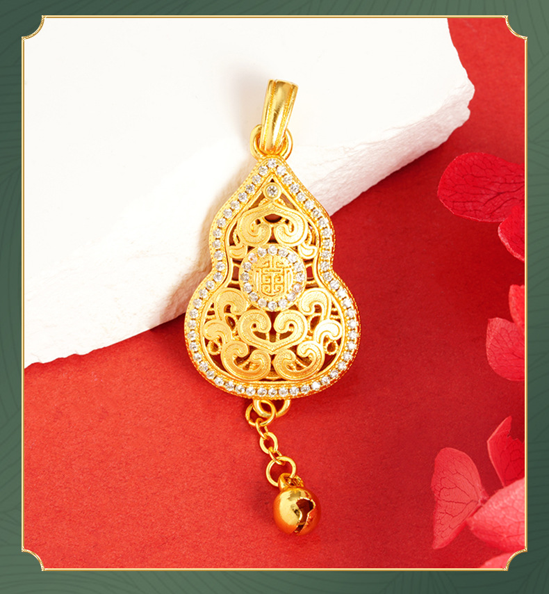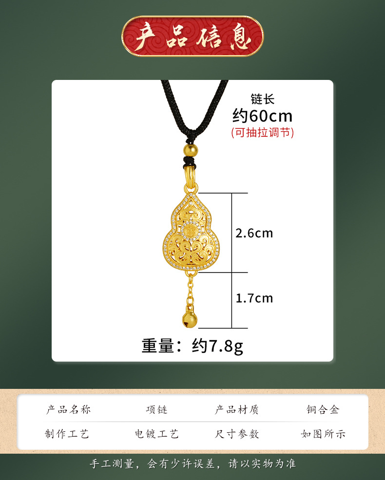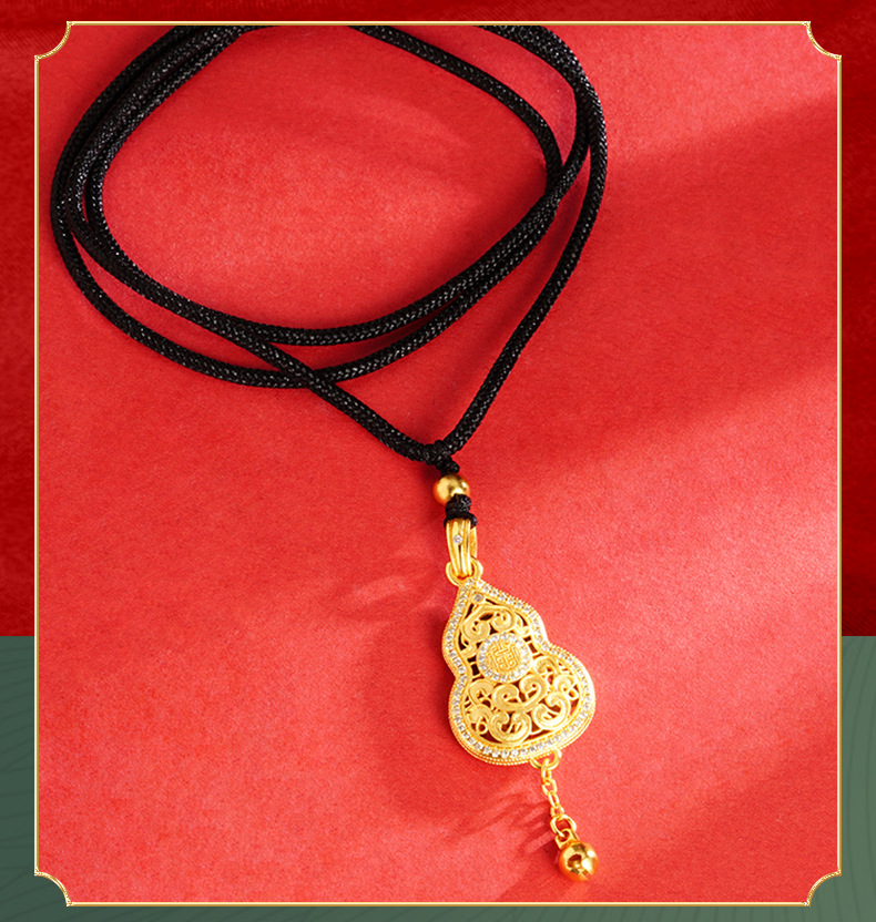 Calabaza Fu Lu Collar chapado en oro de la borla colgante de arena de Vietnam oro joyería antigua hombres y mujeres viven estudio mismo estilo chino estilo