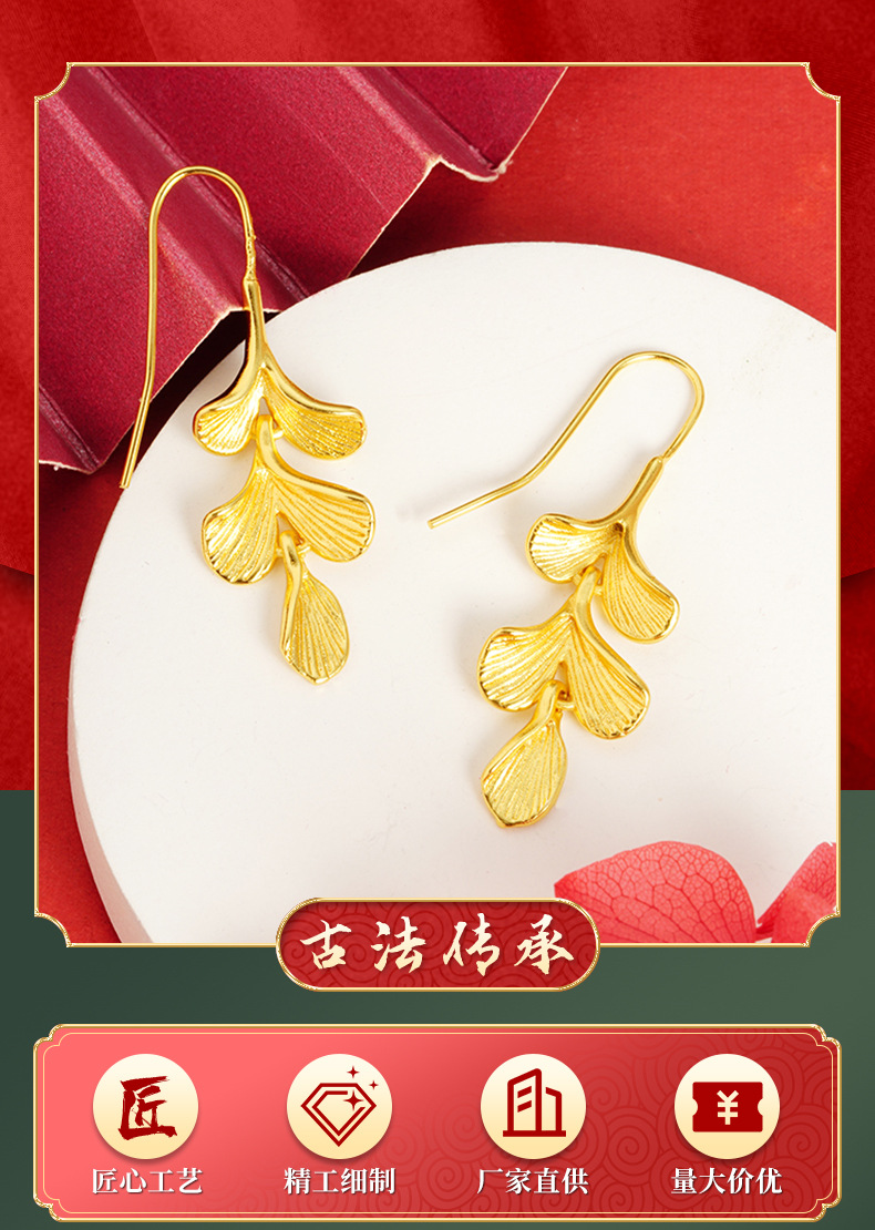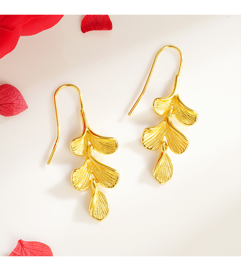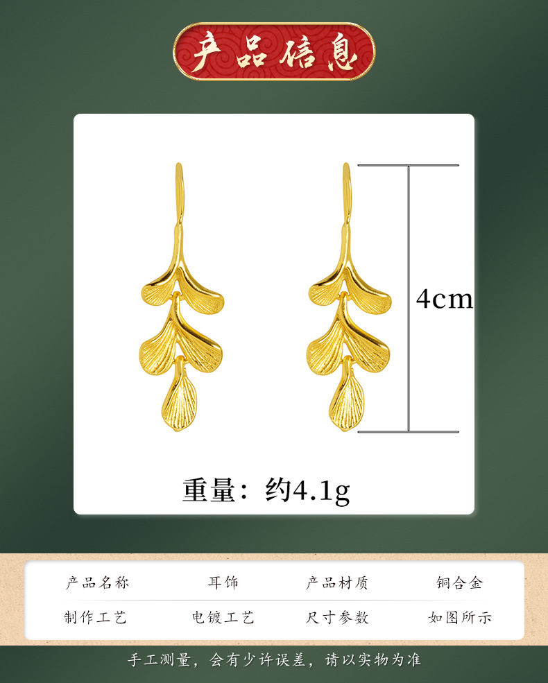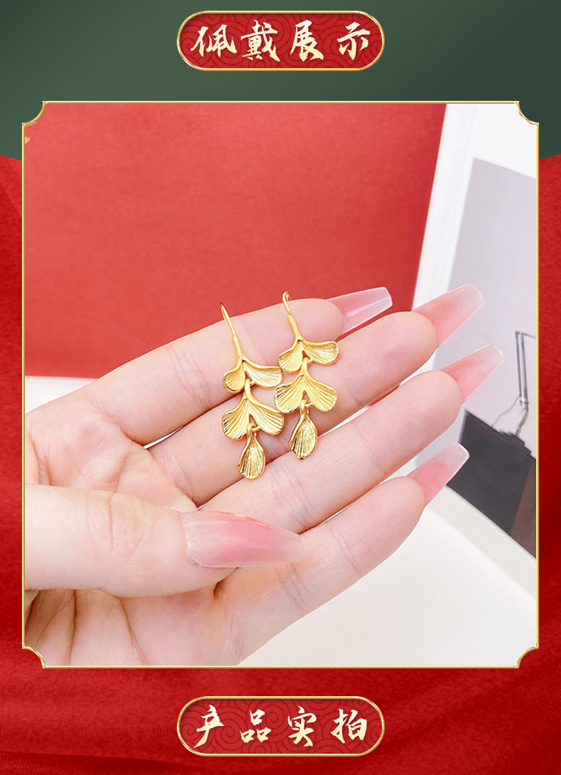 Arena oro ginkgo hoja pendientes aleación de cobre popular estilo simple hoja pendientes niñas accesorios frescos poco Libro Rojo mismo estilo