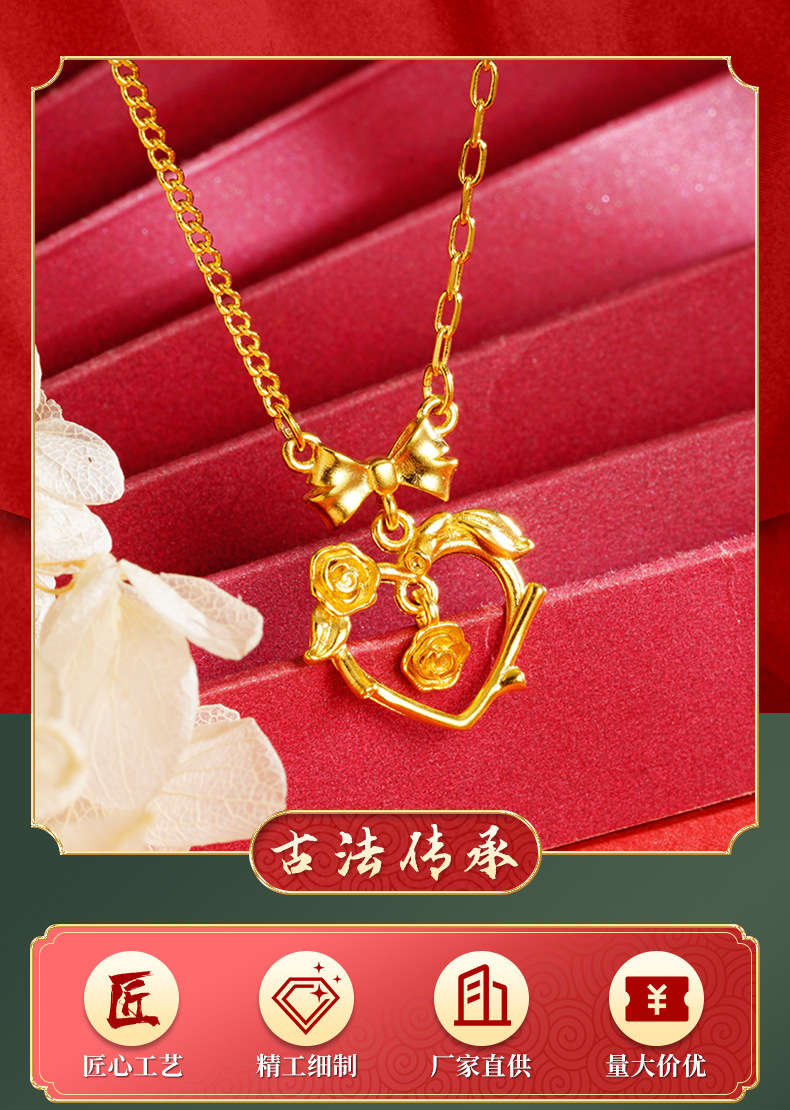 Corazón arco collar Rosa vid Vietnam arena joyería de oro estilo nacional accesorios a juego retro dulce suministro