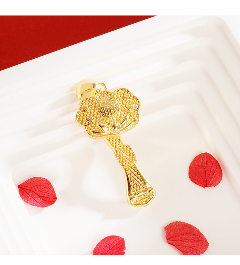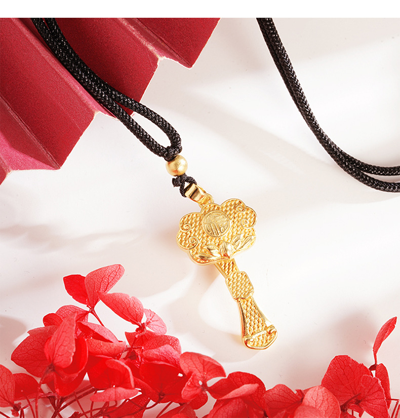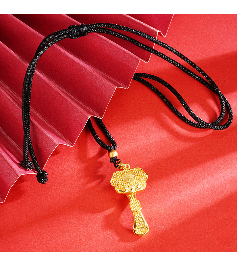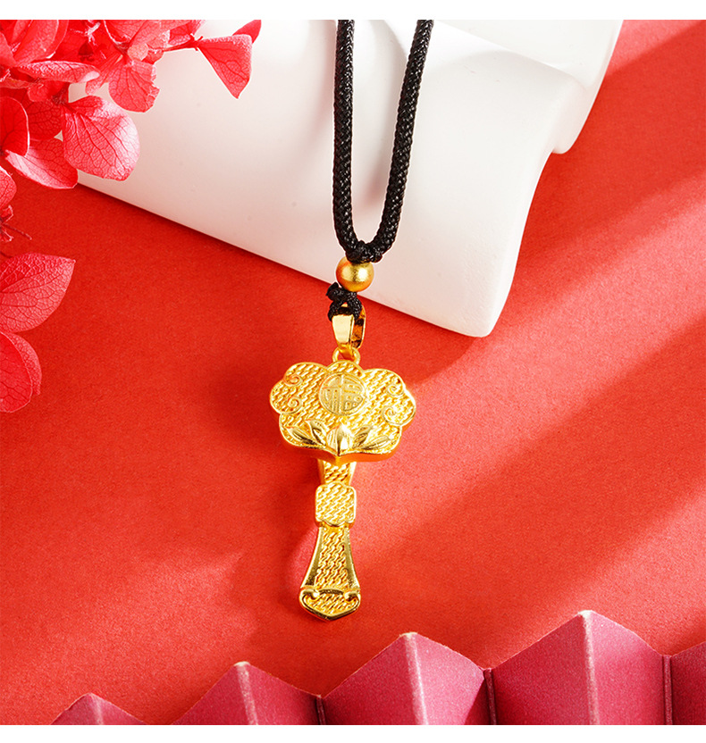 Arena antigua oro Ruyi Lotus collar en forma de llave cuerda cadena adornos Latón chapado en oro estilo chino patrimonio joyería suministro