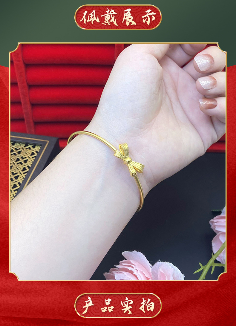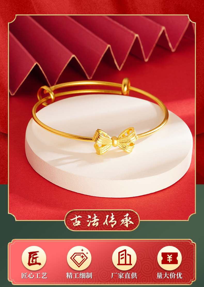 Pulsera de arco de mariposa dibujo ajuste de oro de arena vietnamita no desvanecerse universal dulce oro chapado latón Yiwu joyerías suministro