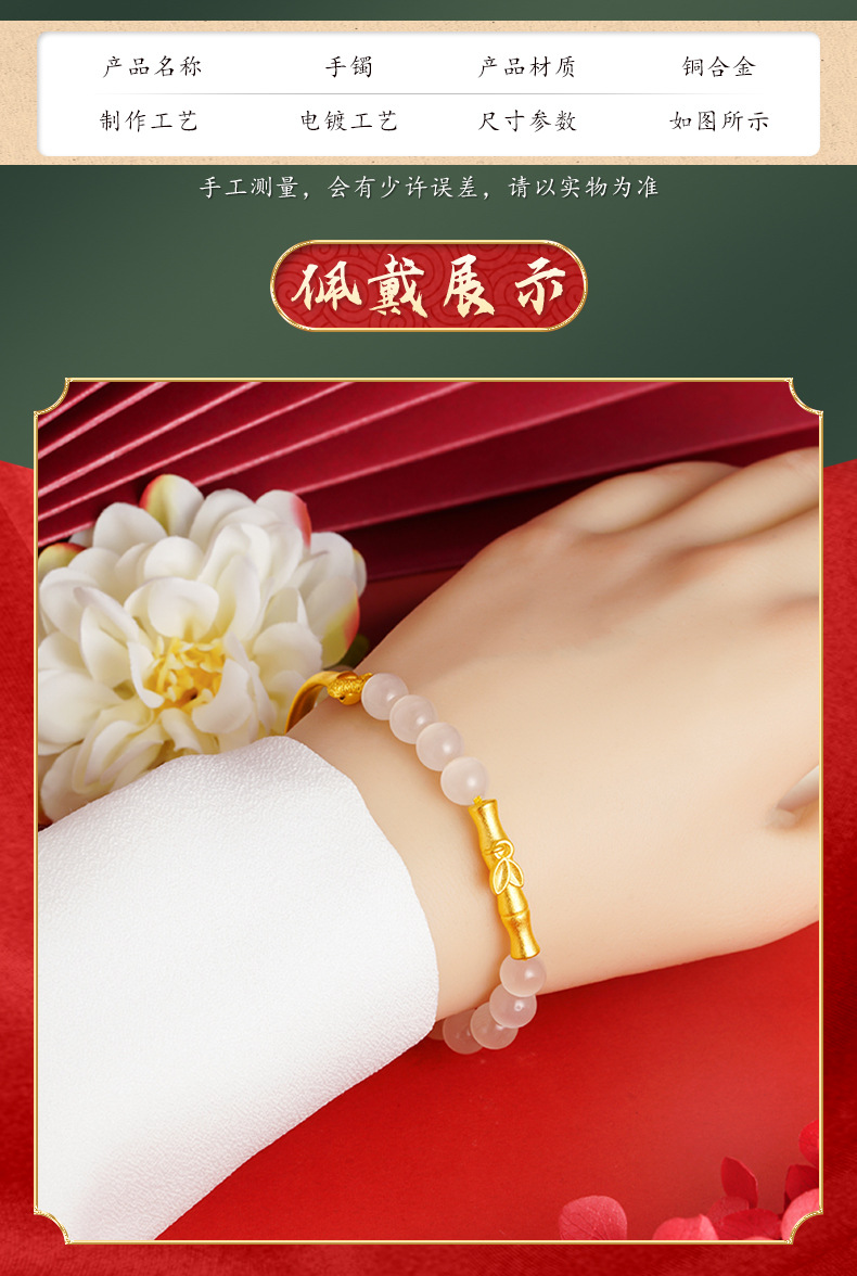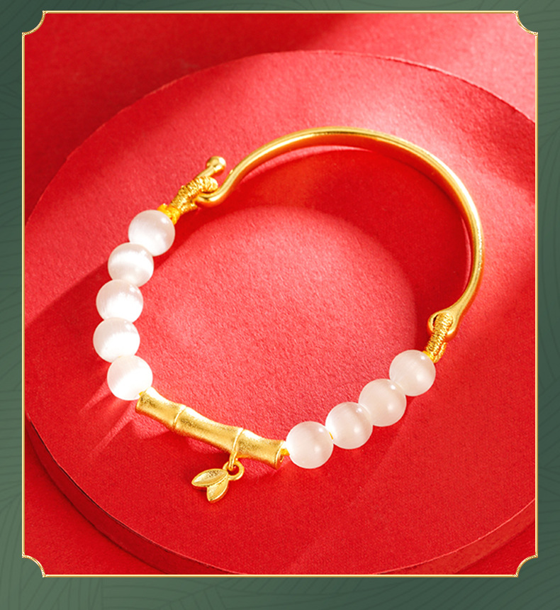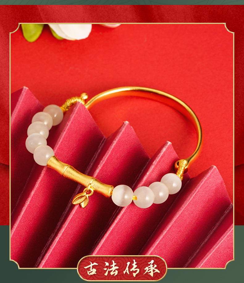 Retro estilo chino de bambú media pulsera imitación joyería de oro arena oro pulsera de Gema sintética Luz de lujo de las mujeres pulsera de cuentas caliente