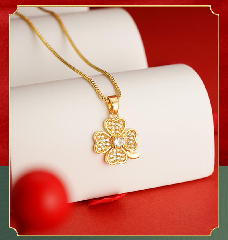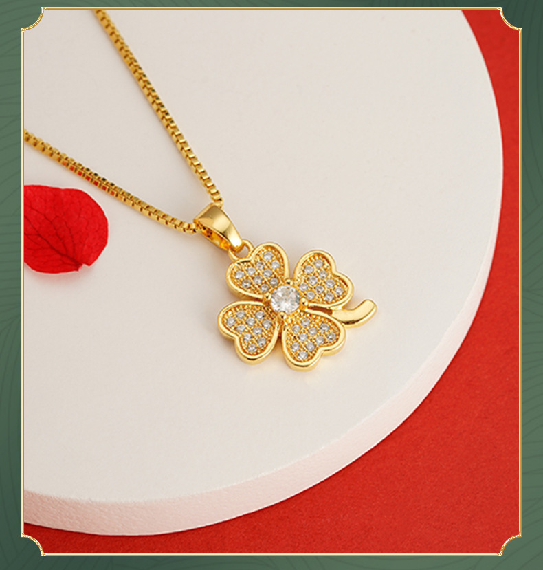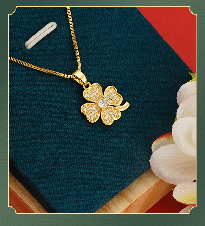 Arena Jinhao con incrustaciones de trébol colgante sin cadena chapado en oro joyas chicas Xiaoqing aire fresco colgante diamante incrustado Flor al por mayor