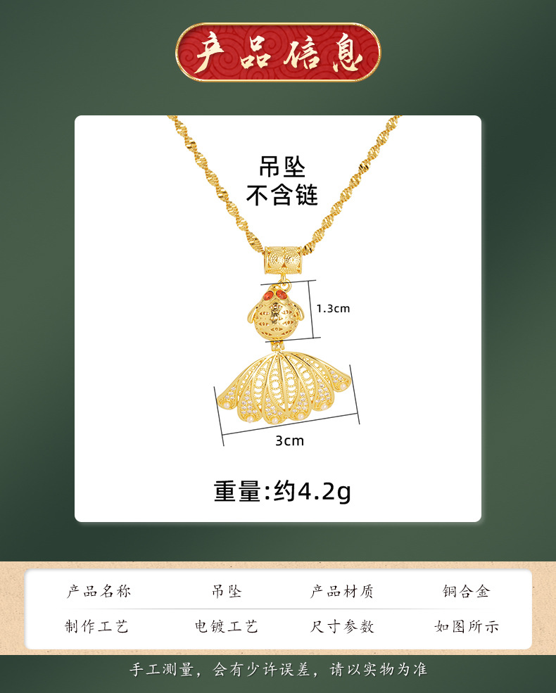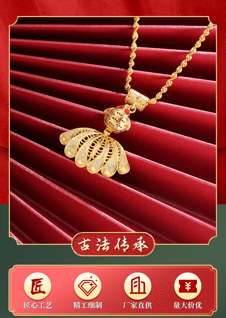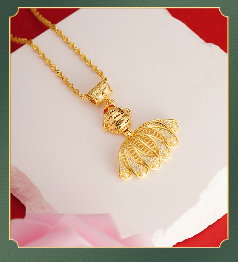 Colgante de pescado con incrustaciones de oro de lujo Vietnam arena oro moda estilo antiguo collar de mujer de alto grado colgante hueco todo a juego suministro de fábrica