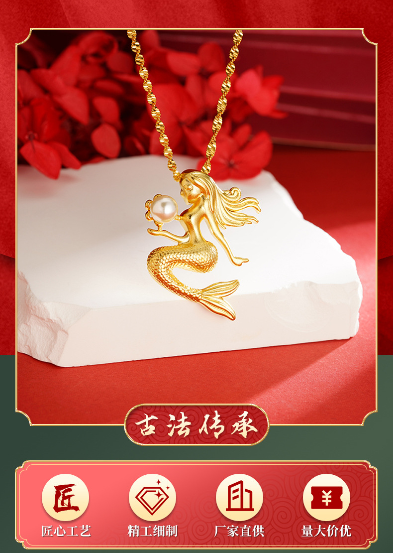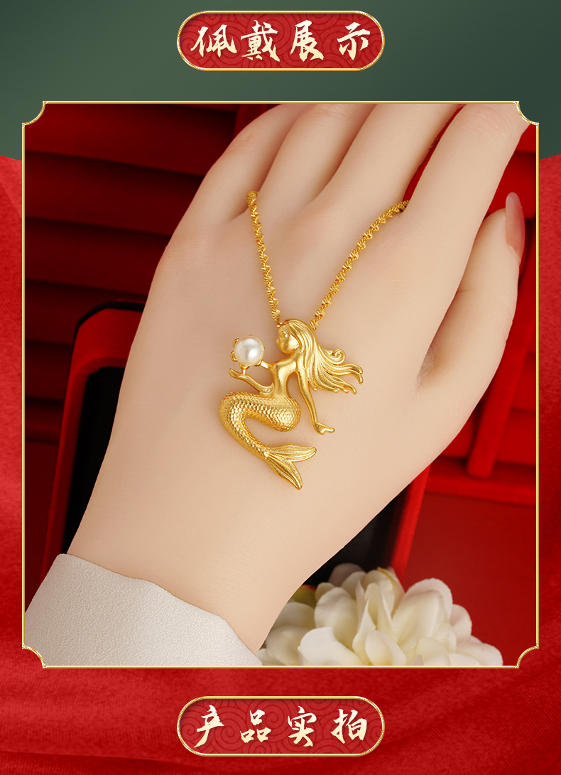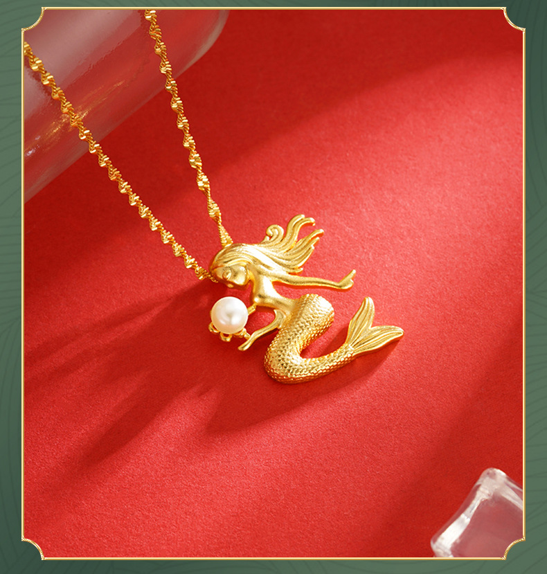 Arena oro sirena artificial perla colgante dulce todo fósforo de las mujeres nicho diseño sentido popular en línea popular hermosa aleación de cobre