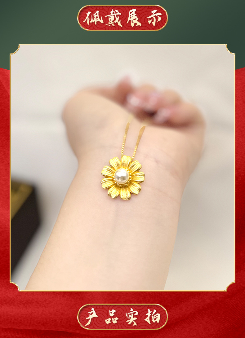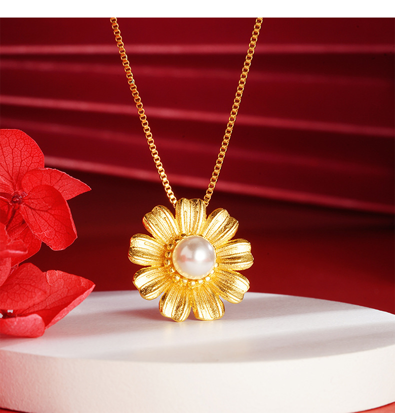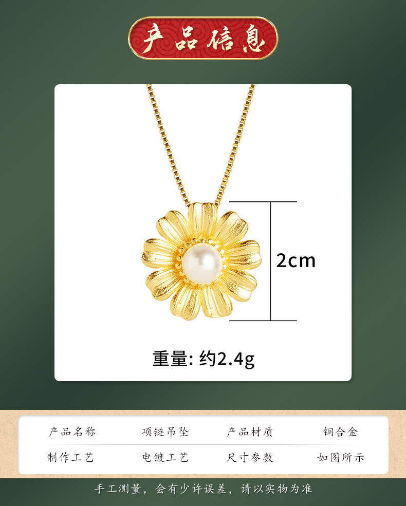 Luz de lujo estilo Plaid flor colgante Vietnam arena oro imitación perla colgante de aleación de cobre exquisita joyería regalo de boda al por mayor