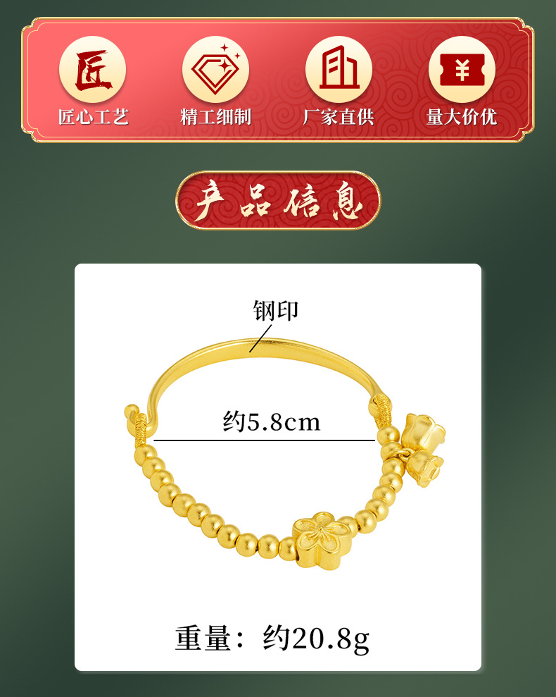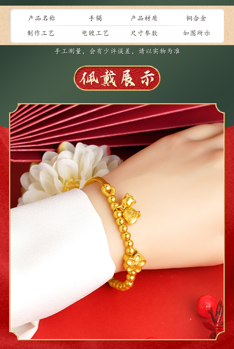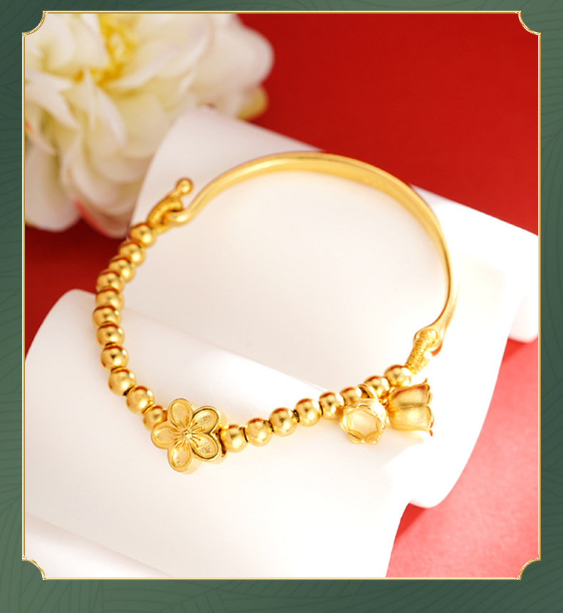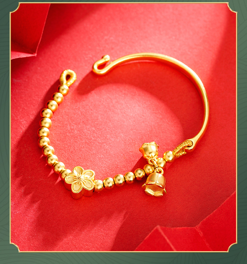 Arena de oro Linglan cuentas pulsera de mujer con cuentas media pulsera flor Pulsera de campana aleación de cobre suministro directo de fábrica suministro de todo fósforo