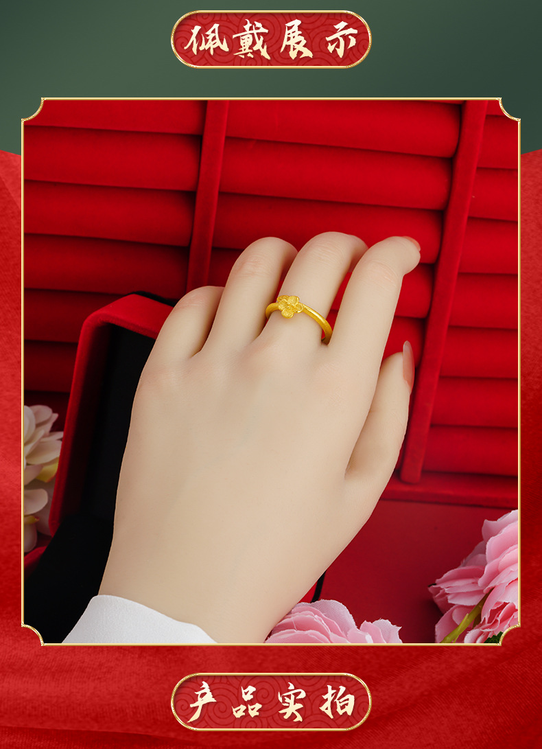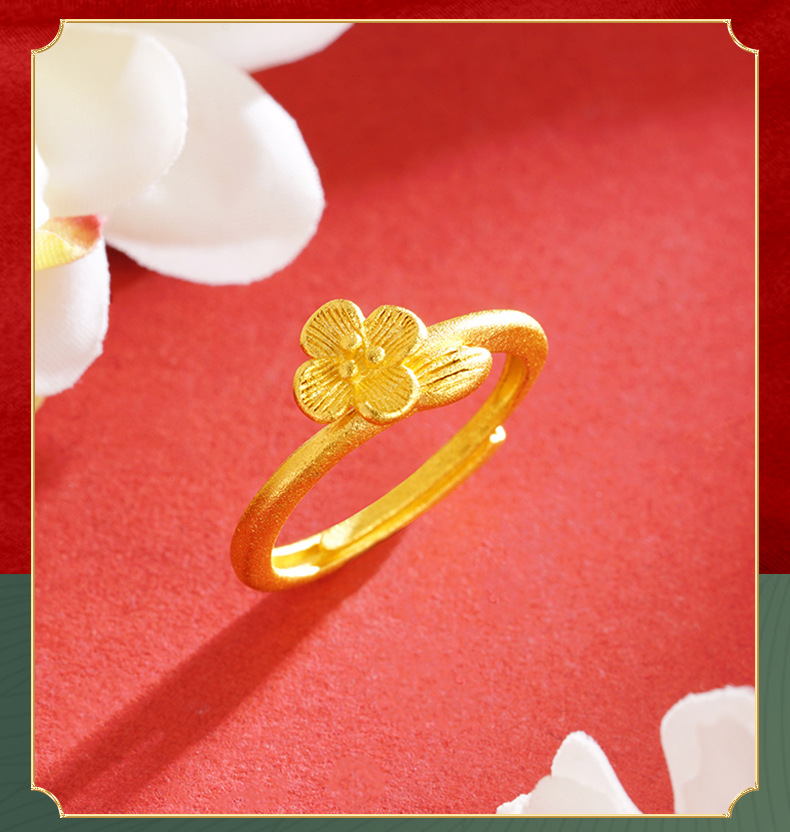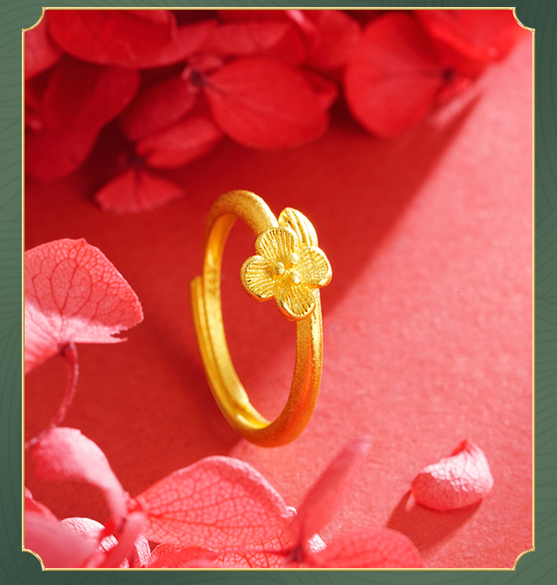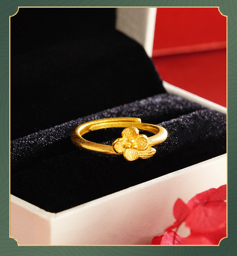 Nuevo anillo de oro de arena no se desvanece durante mucho tiempo diseño de nicho flor anillo de cola abierta estilo étnico joyería de oro de imitación de cobre