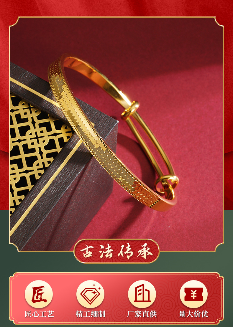 Vietnam oro dragón escala Push-Pull pulsera de aleación de cobre ajustable de largo plazo no se desvanece todo-coincidencia nacional de la moda de los hombres y las mujeres de la pulsera al por mayor
