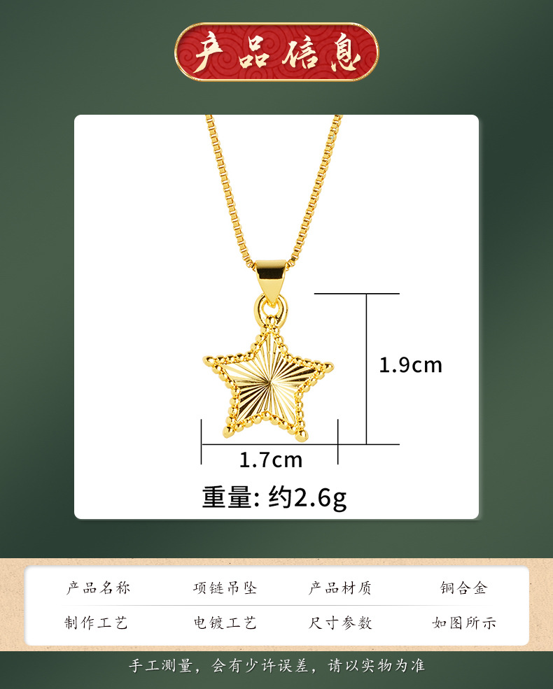 Vietnam oro estrella de cinco puntas colgante estrella joyería estrellada aleación de cobre chica DIY accesorios de joyería fábrica al por mayor