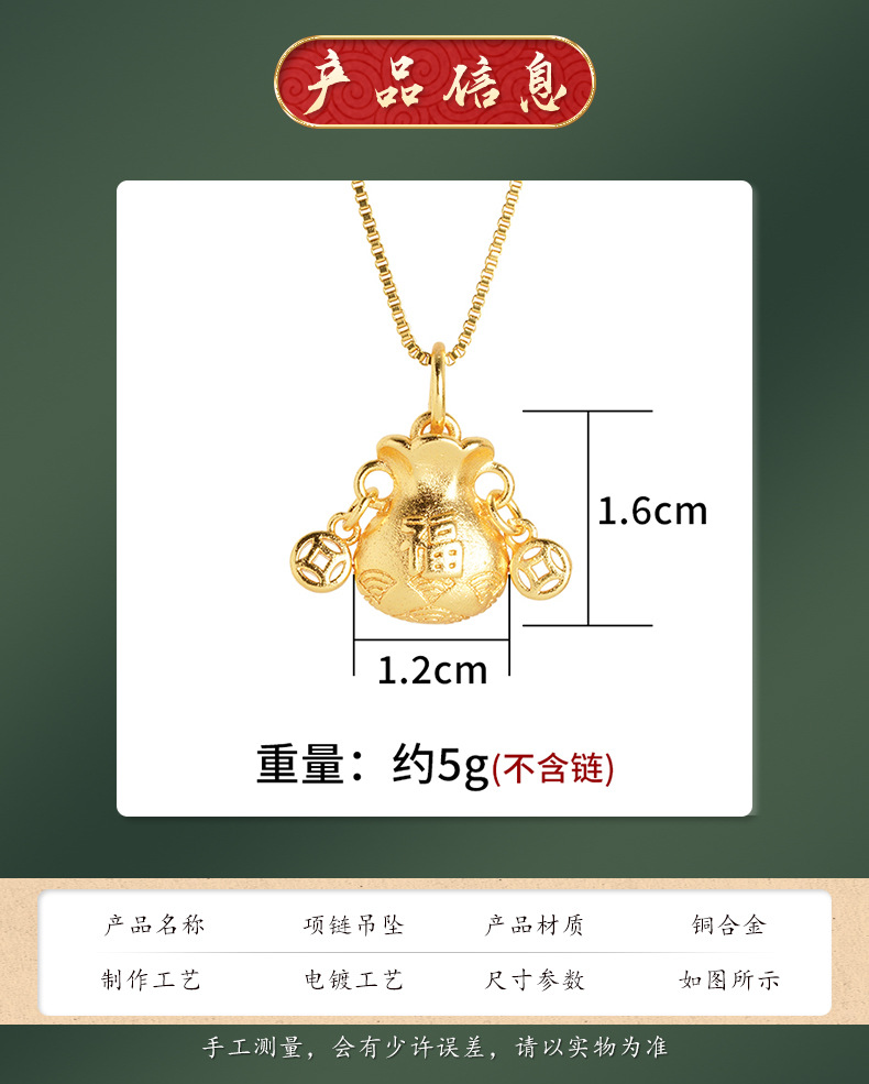 Vietnam arena oro fu carácter Lucky Bag colgante moneda de cobre no se desvanece durante mucho tiempo todo-juego Xiangyun estilo chino hombres y mujeres joyería