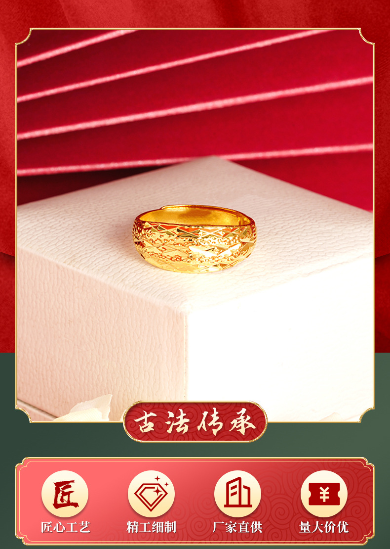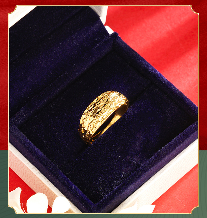 Anillo de tres filas tridimensional de las mujeres de imitación de oro geométrico arena al por mayor de oro de la joyería de suministro directo de fábrica en vivo en línea popular