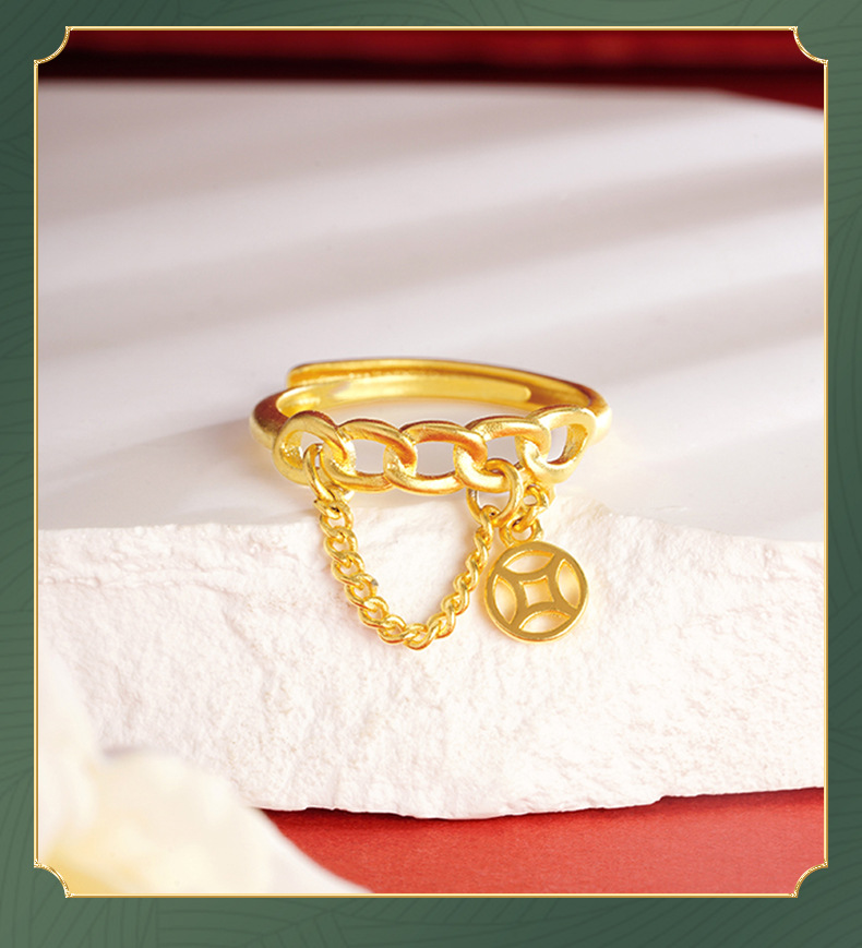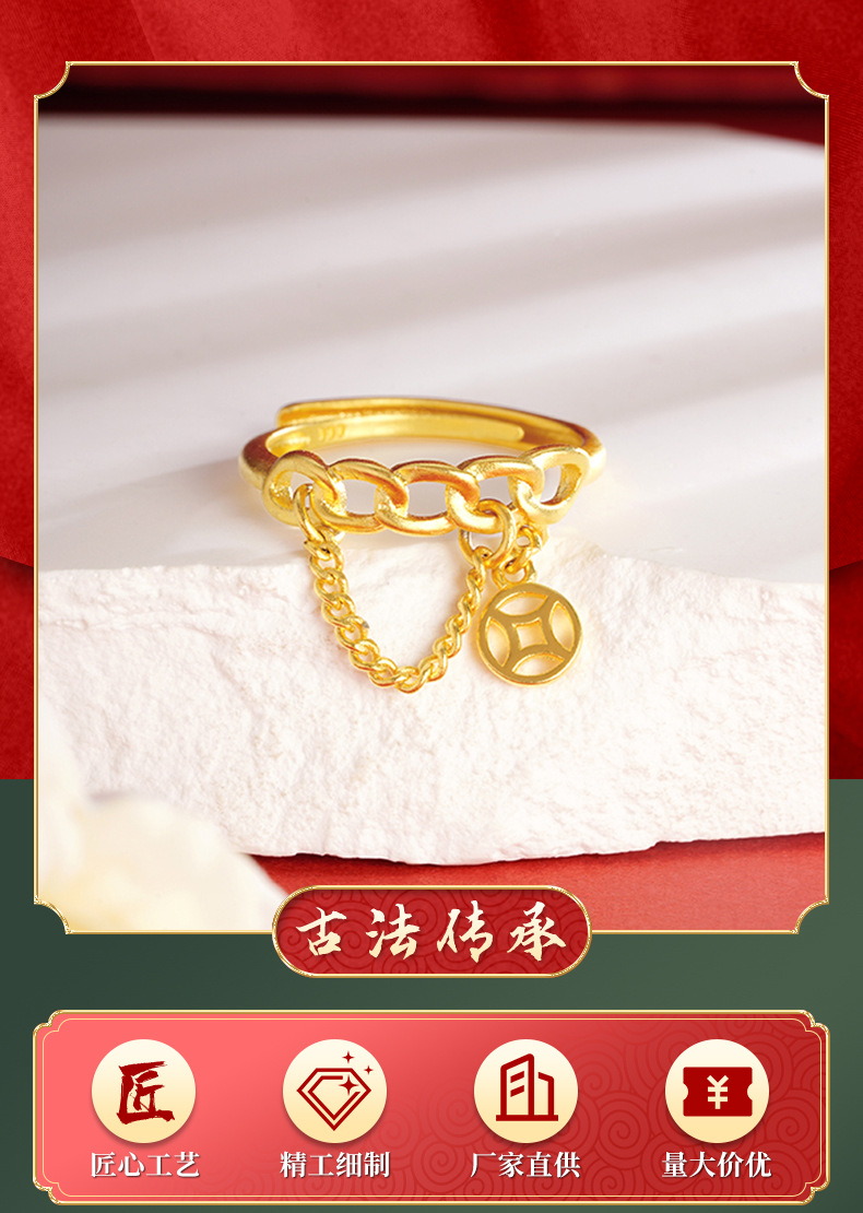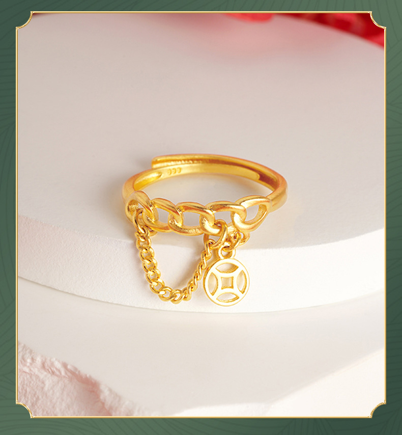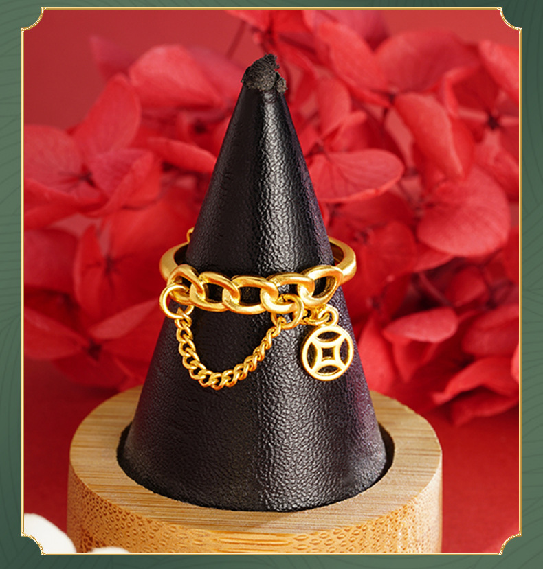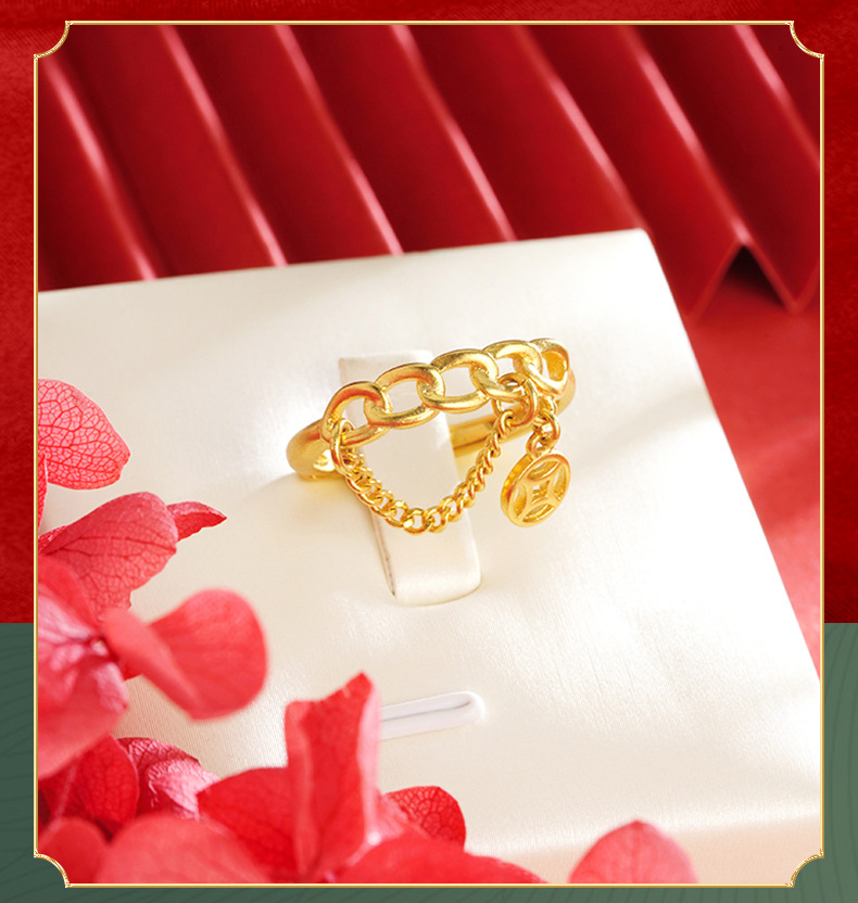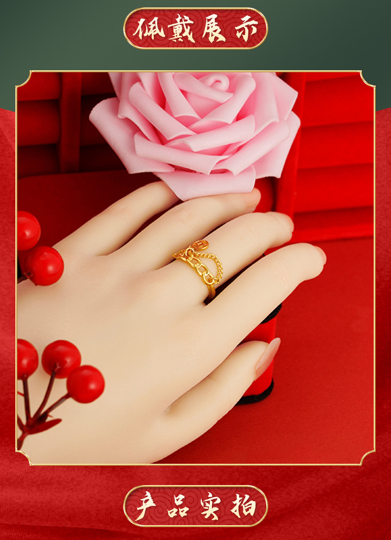 El nuevo anillo de oro de arena no se desvanece durante mucho tiempo anillo abierto anillo femenino diseño de nicho anillo de cola de oro de imitación avanzado