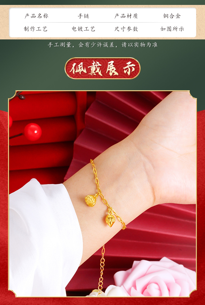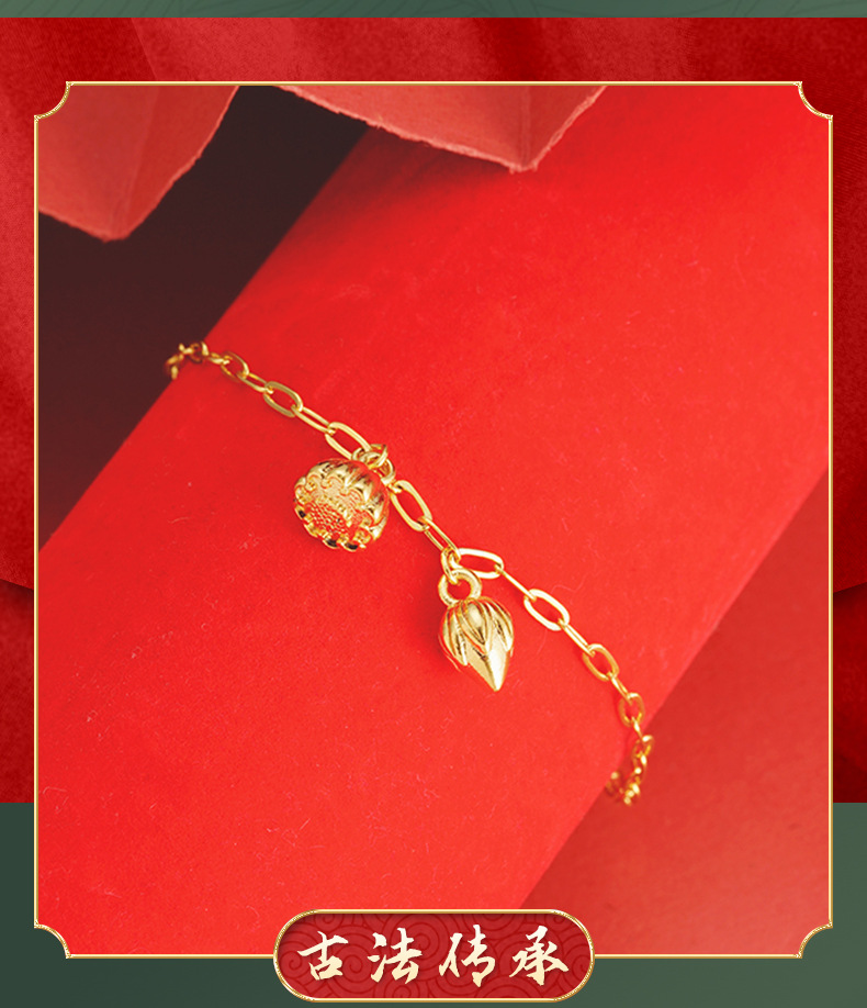 Oro Lotus pulsera de loto estilo chino joyería auspiciosa aleación de cobre pulsera elegante de las mujeres Venta caliente suministro directo de fábrica
