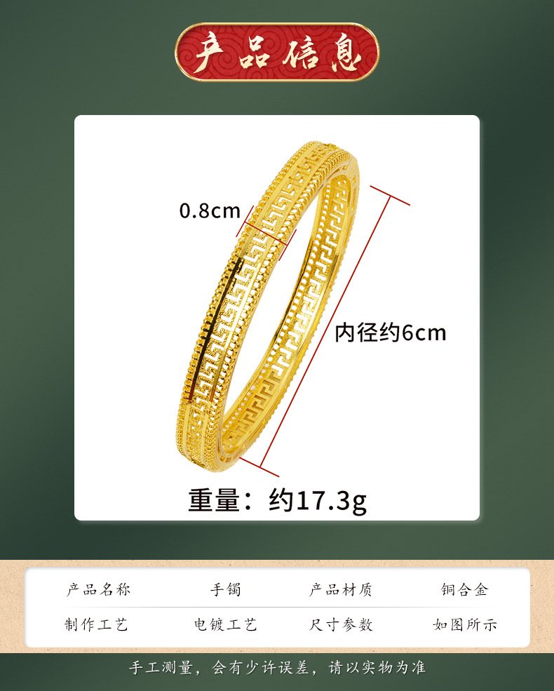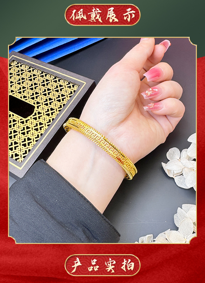 Arena antigua oro hueco nuevo patrón hebilla pulsera hombres y mujeres alta retención de color Vietnam chapado en oro de aleación de cobre Yiwu joyería al por mayor