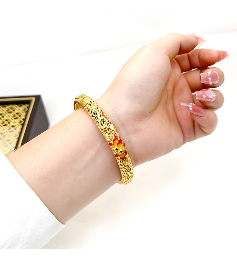 Vietnam oro hueco hebilla pulsera Lotus Plum Blossom corte patrón de las mujeres temperamento retro fábrica al por mayor