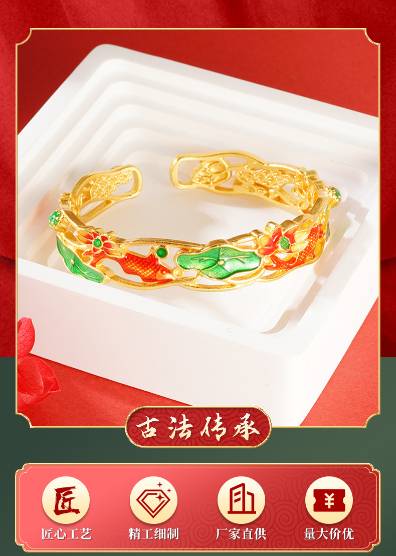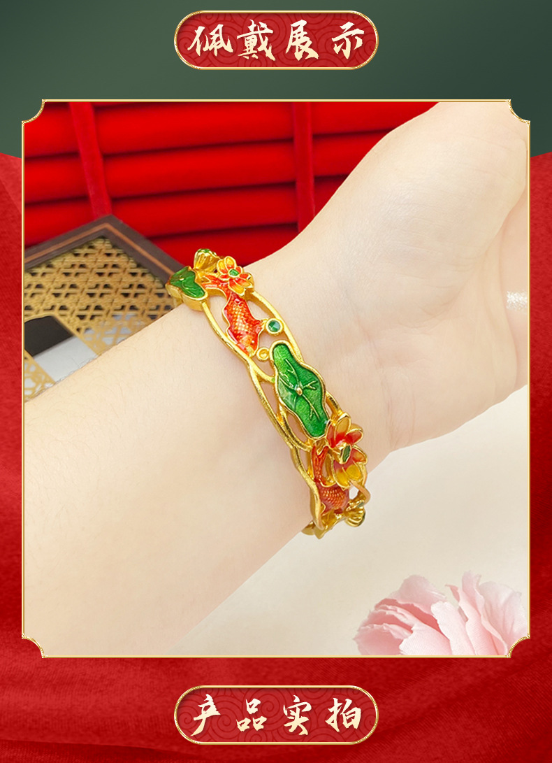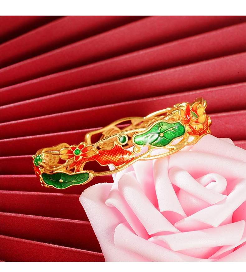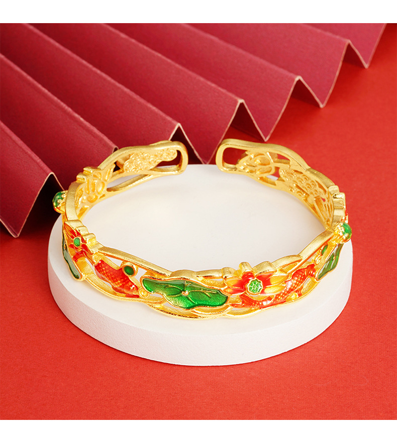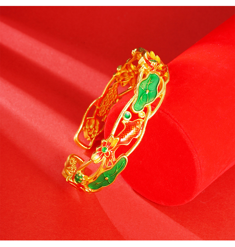 Esmalte Lotus Pond Moonlight pulsera abierta de alto grado de diseño de nicho retro elegante todo fósforo Luz de lujo arena joyería de oro