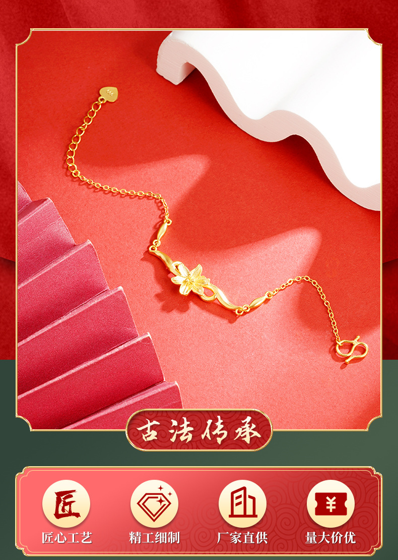 Vietnam arena oro flor pulsera ajustable temperamento femenino todo partido estilo antiguo patrimonio durante mucho tiempo no se desvanece en vivo suministro al por mayor