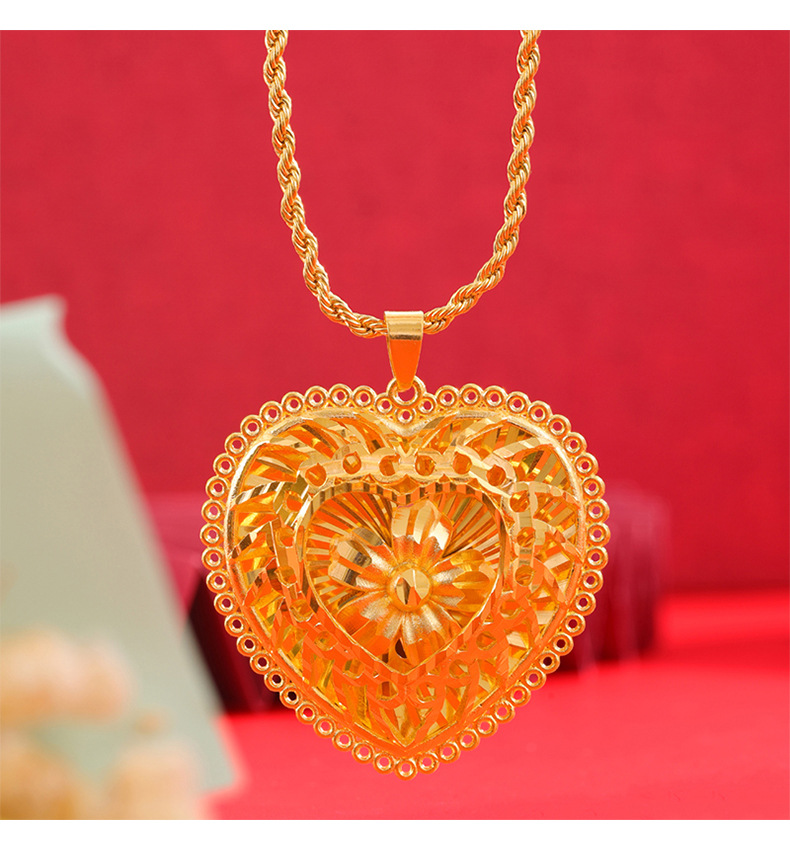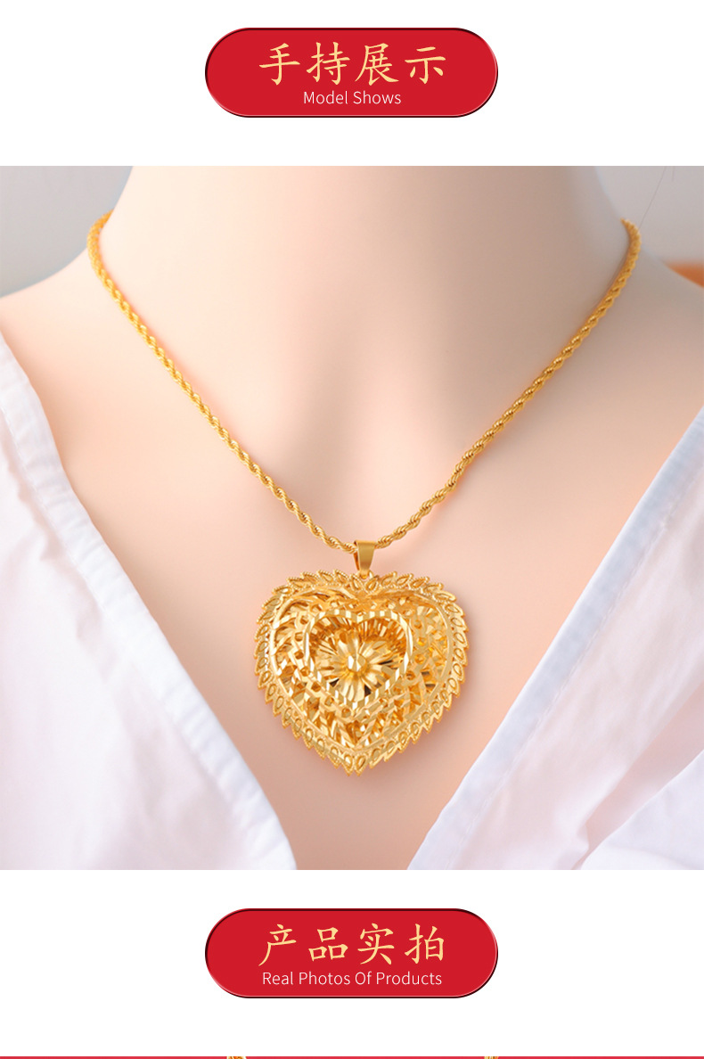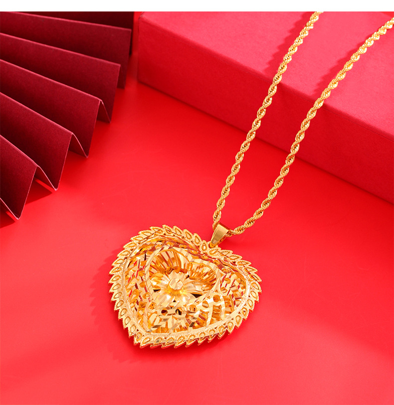 Nuevo melocotón corazón hueco flor COLLAR COLGANTE imitación de oro romántico en forma de corazón colgante de las mujeres de arena accesorios de oro retro todo partido