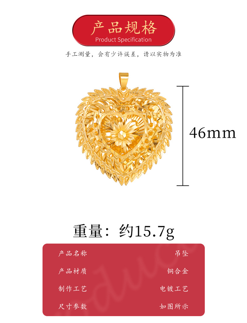 | Color | D2069 colgante de corazón de melocotón A (sin cadena),D2070 colgante Corazón de melocotón B (sin cadena) |