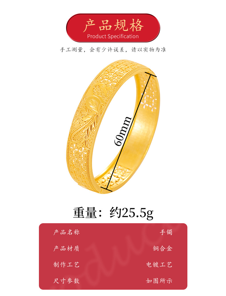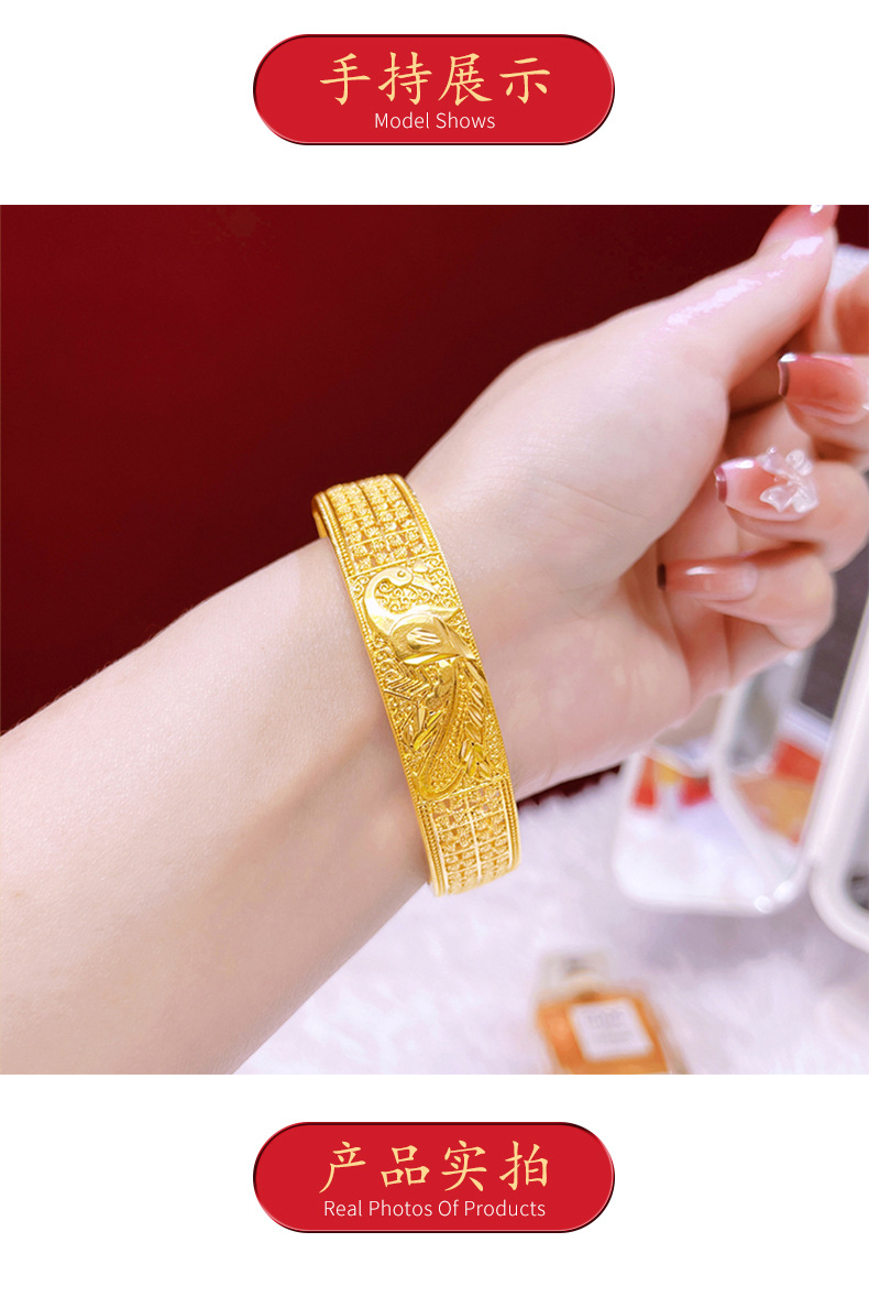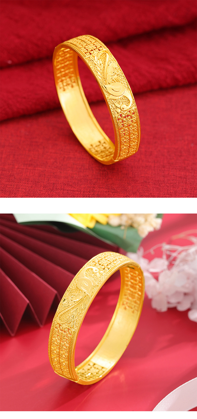 Hueco tallado flor pulsera patrón de pavo real estilo antiguo elegante todo partido pulsera de aleación de cobre hembra Venta caliente suministro directo de fábrica al por mayor