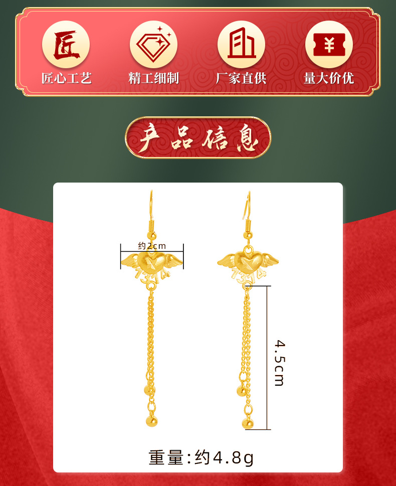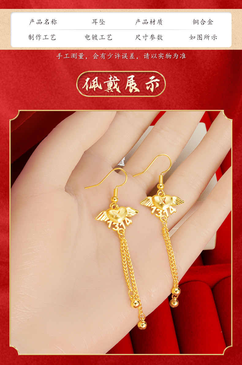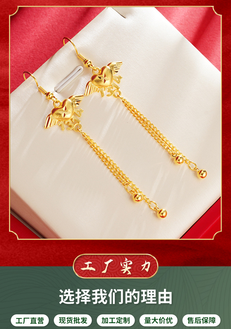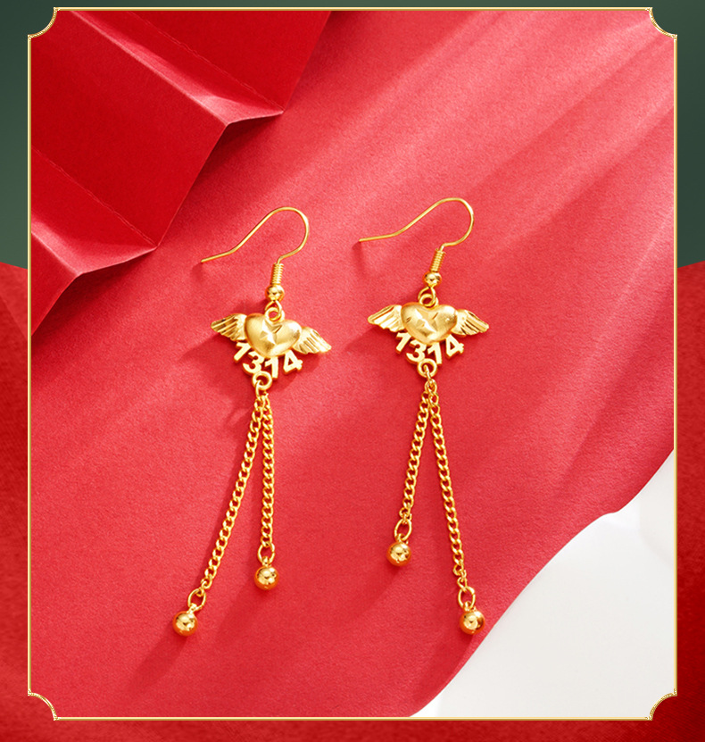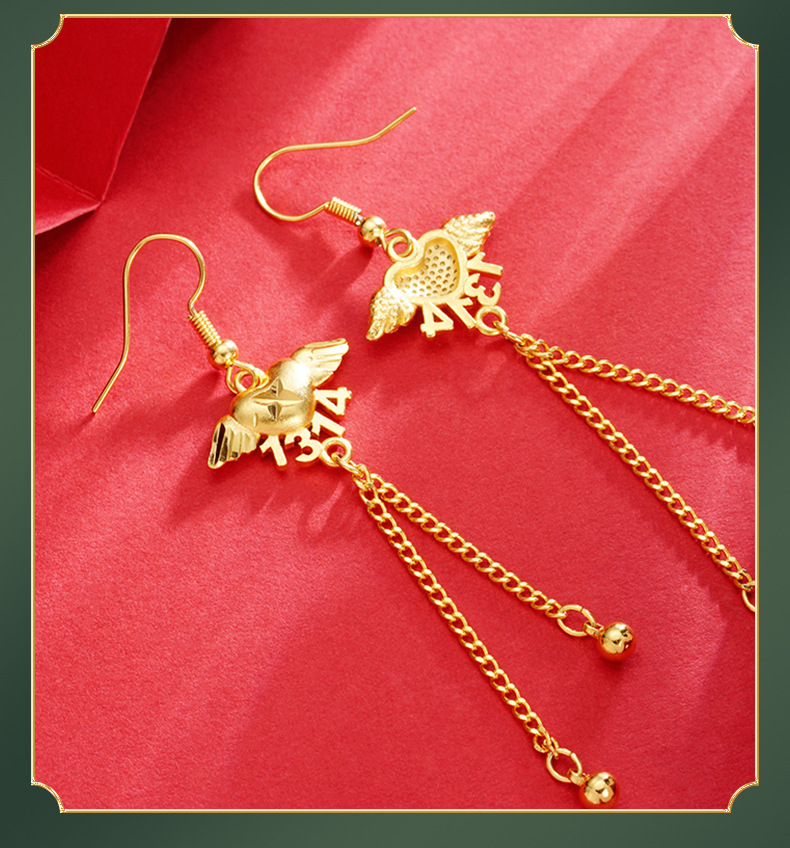 Lifetime Angel pendientes de las mujeres de alto grado de Vietnam arena oro plata aguja pendientes borla Luz de lujo pendientes no se desvanece
