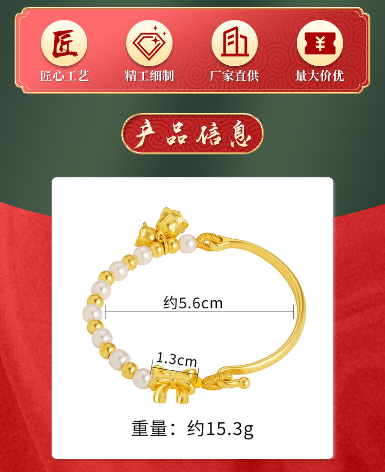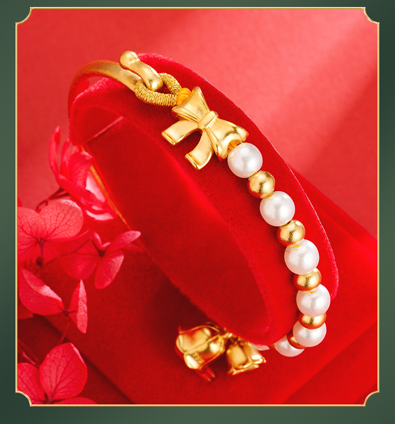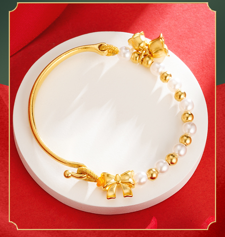 Arco de estilo antiguo media pulsera Vietnam arena oro estilo étnico imitación perla orquídea pulsera imitación oro antigua artesanía de oro