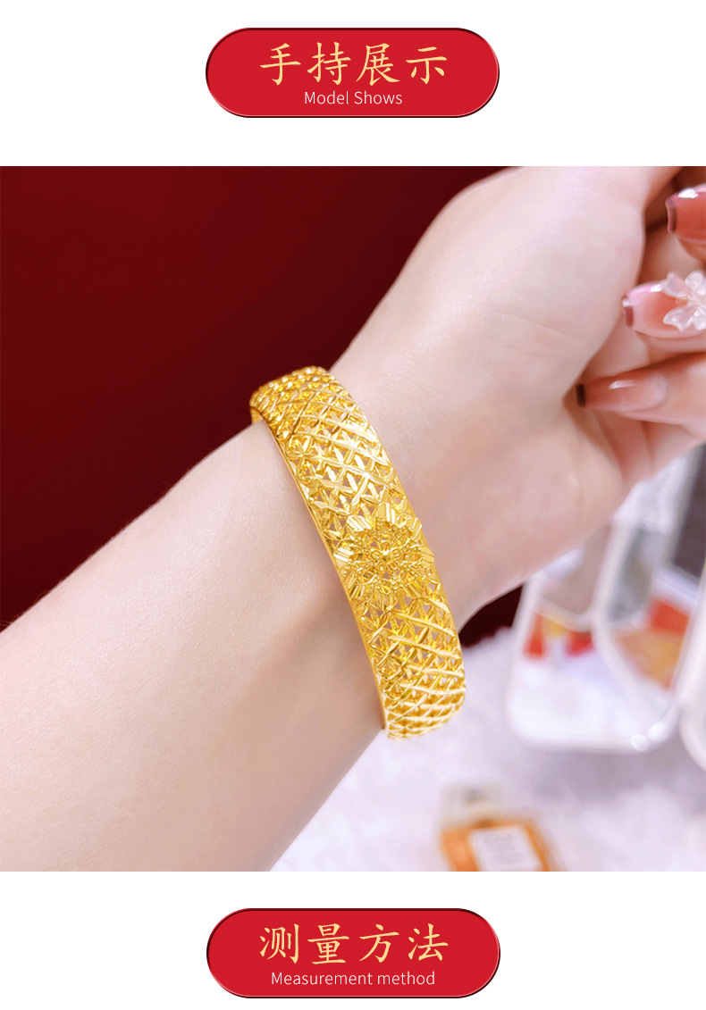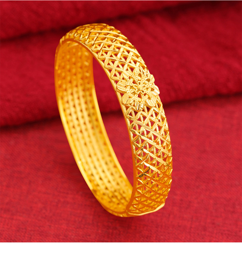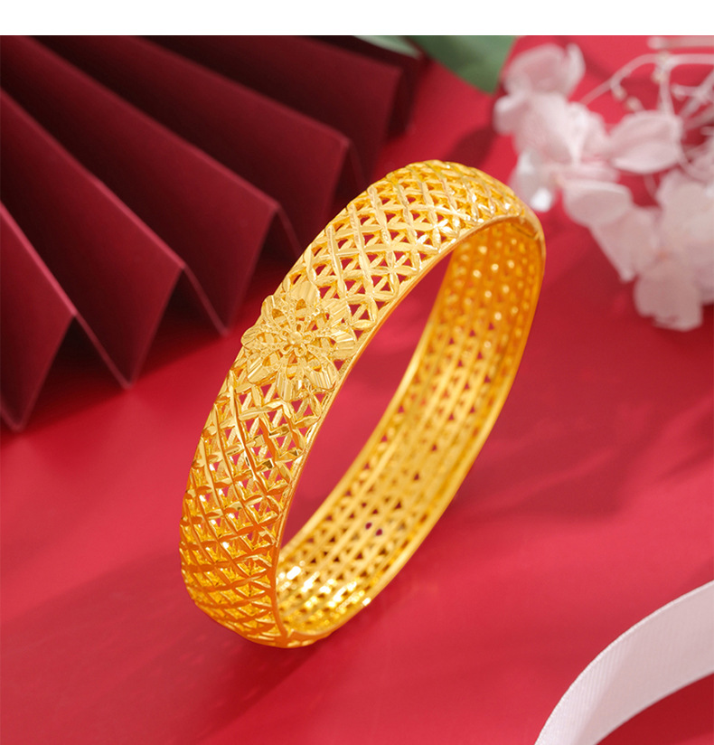 Vintage tallado hueco flor pulsera ancho hombres y mujeres pulsera de aleación de cobre imitación tejida estilo nacional ingeniosa fábrica al por mayor
