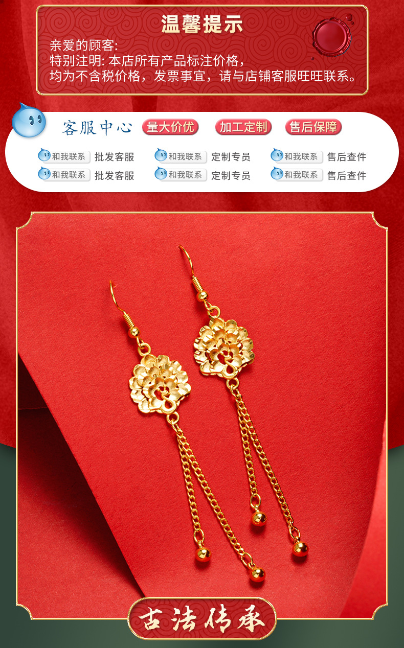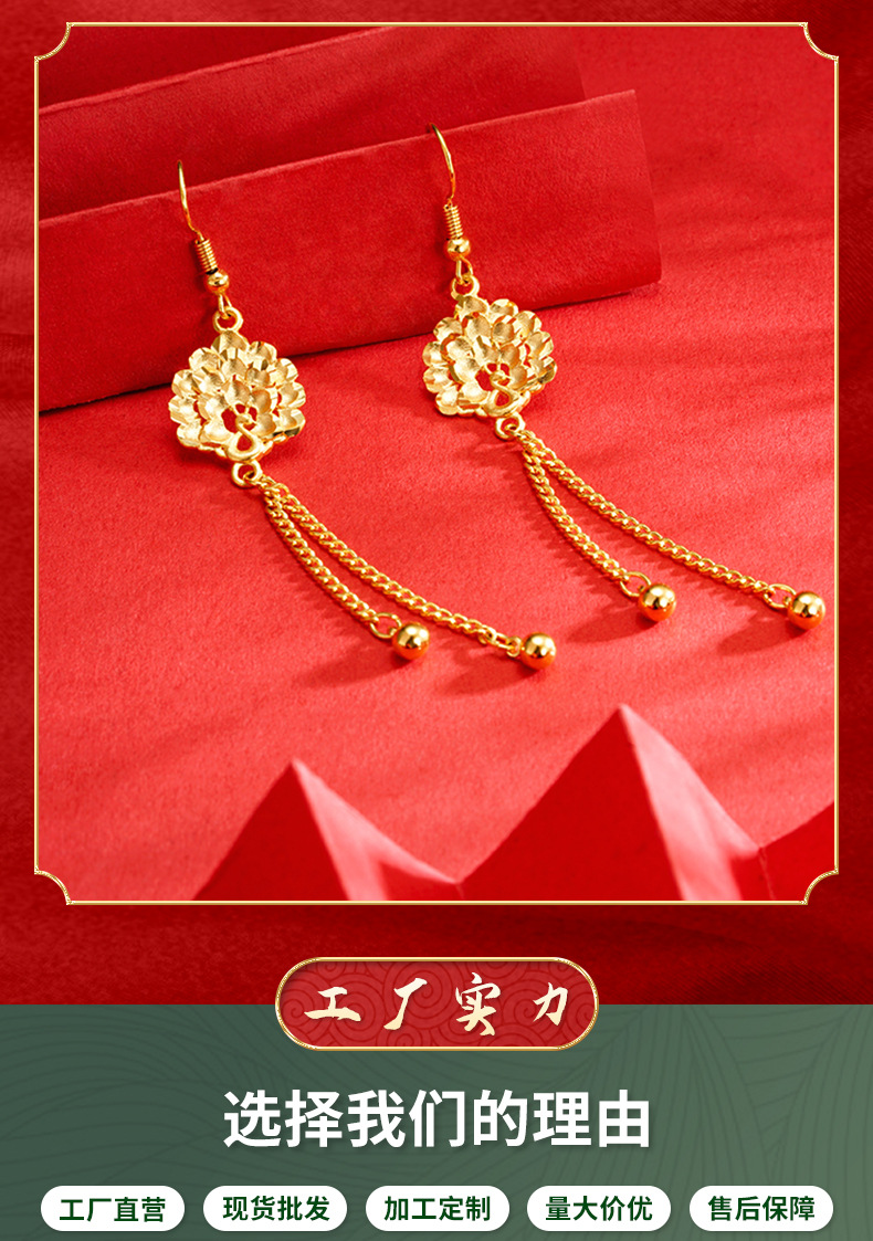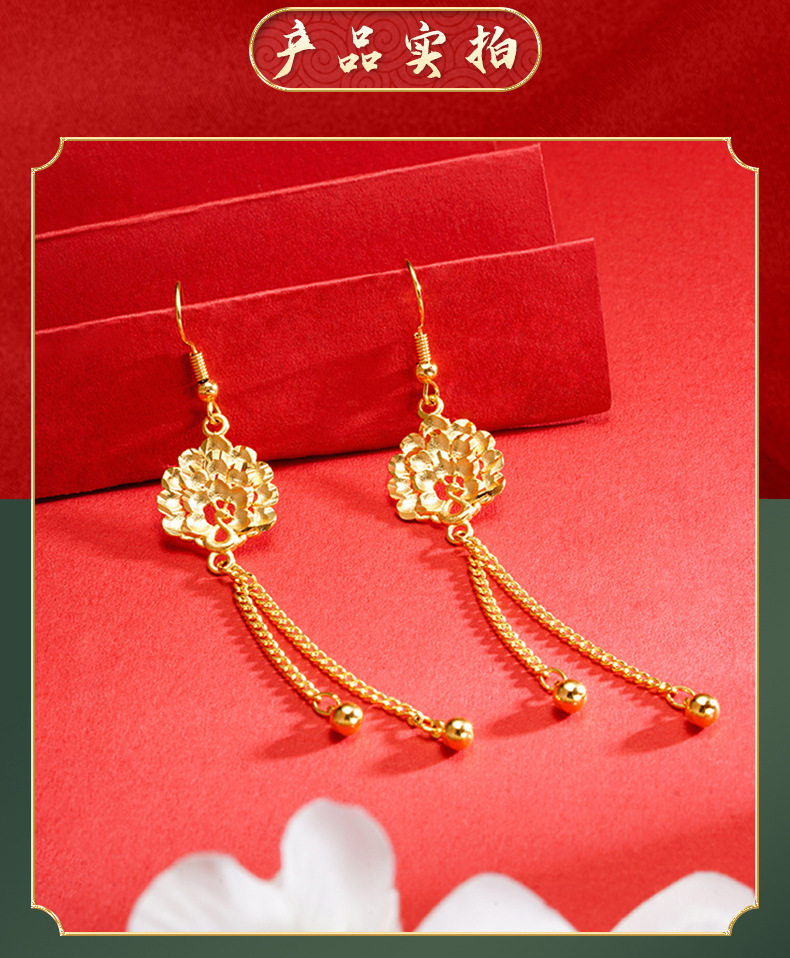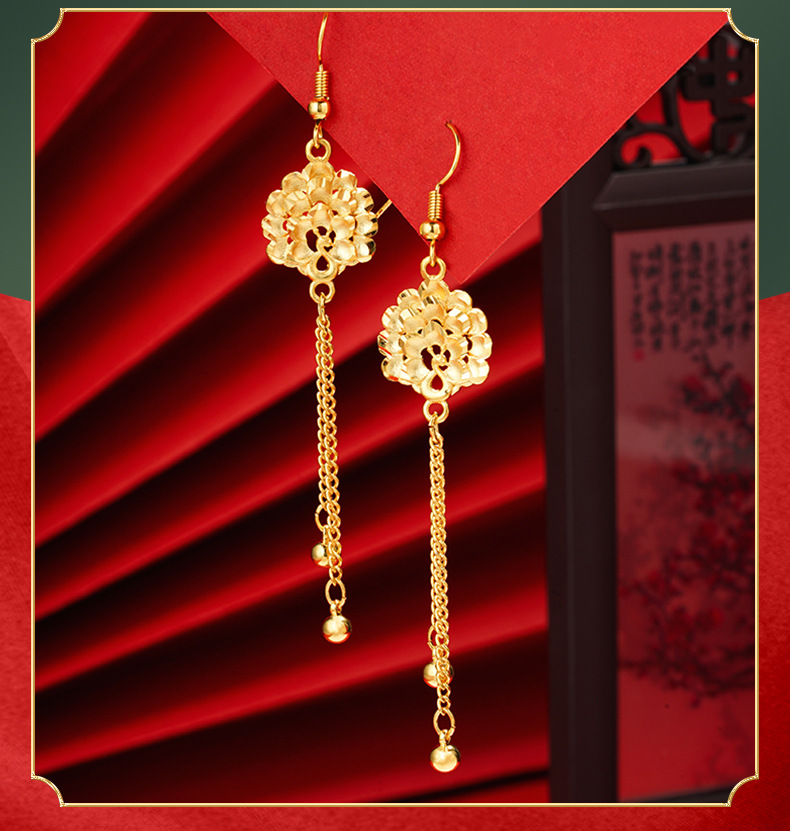 Nuevo Pavo Real pendientes de oro estilo chino joyería auspiciosa Vietnam oro largo pendientes de borla de las mujeres suministro directo de fábrica