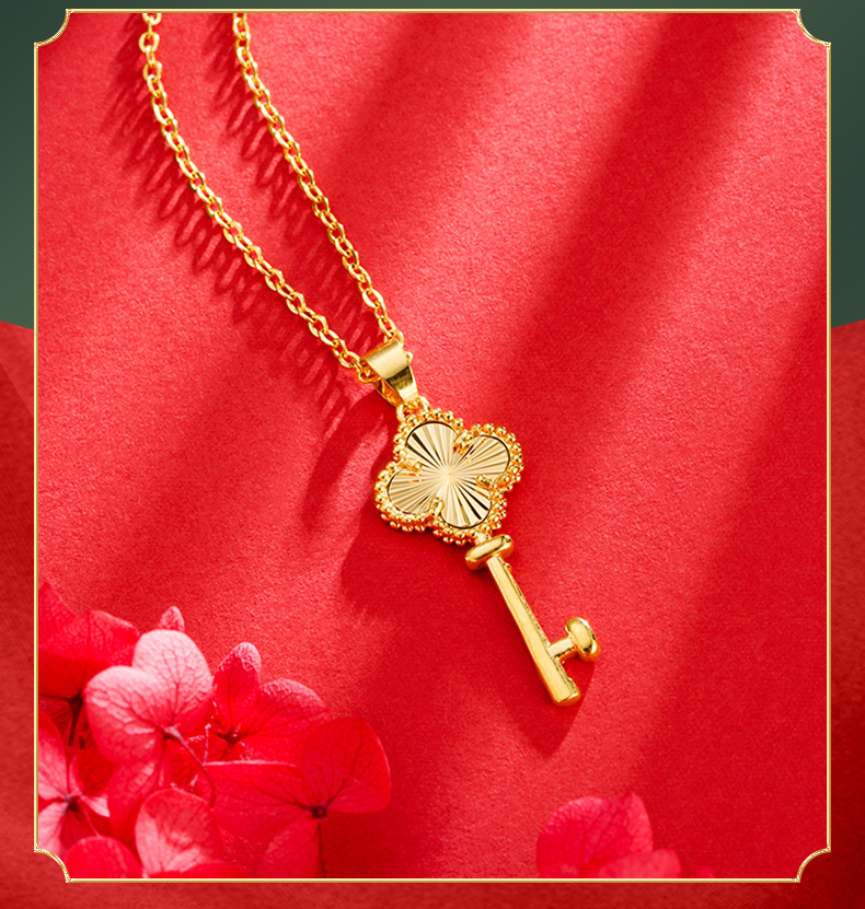 Nuevo trébol de cuatro hojas colgante de oro accesorios DIY nicho femenino Tipo de llave tienda de oro mismo estilo de luz de lujo estilo personalidad todo partido
