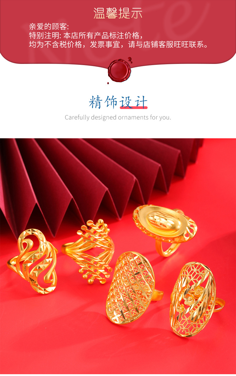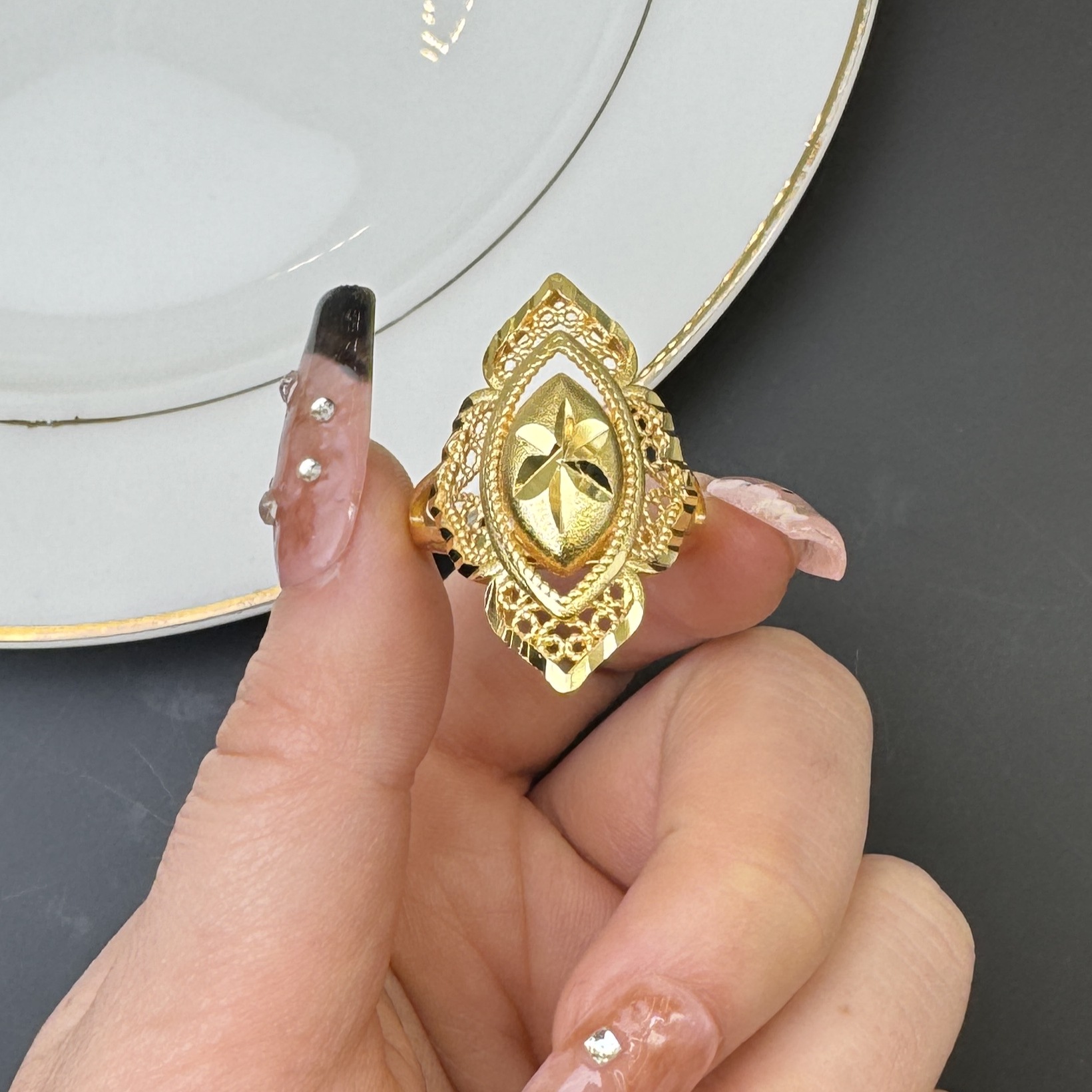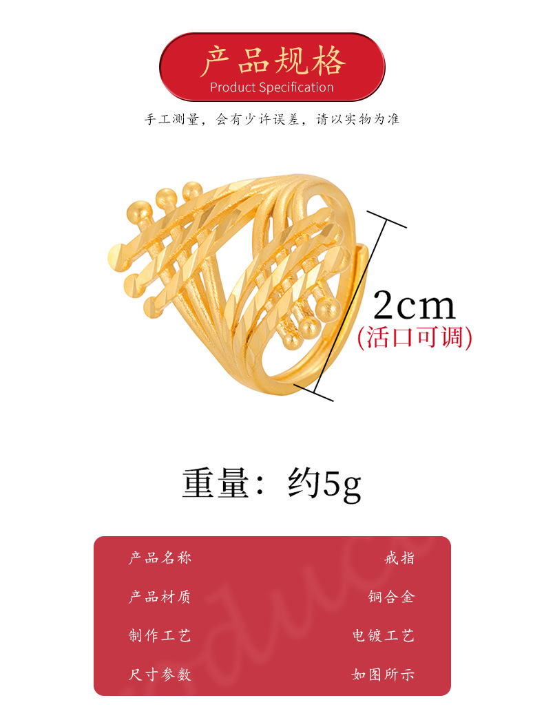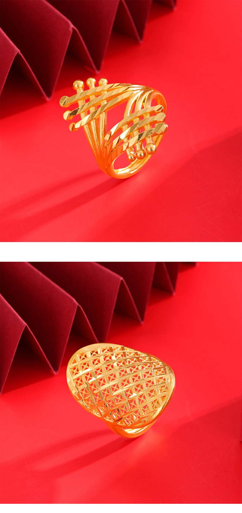 Anillo grande de la ley antigua de oro de arena vietnamita para damas que no se desvanece durante mucho tiempo, joyería de anillo abierto de estilo explosivo transfronterizo de simulación de latón
