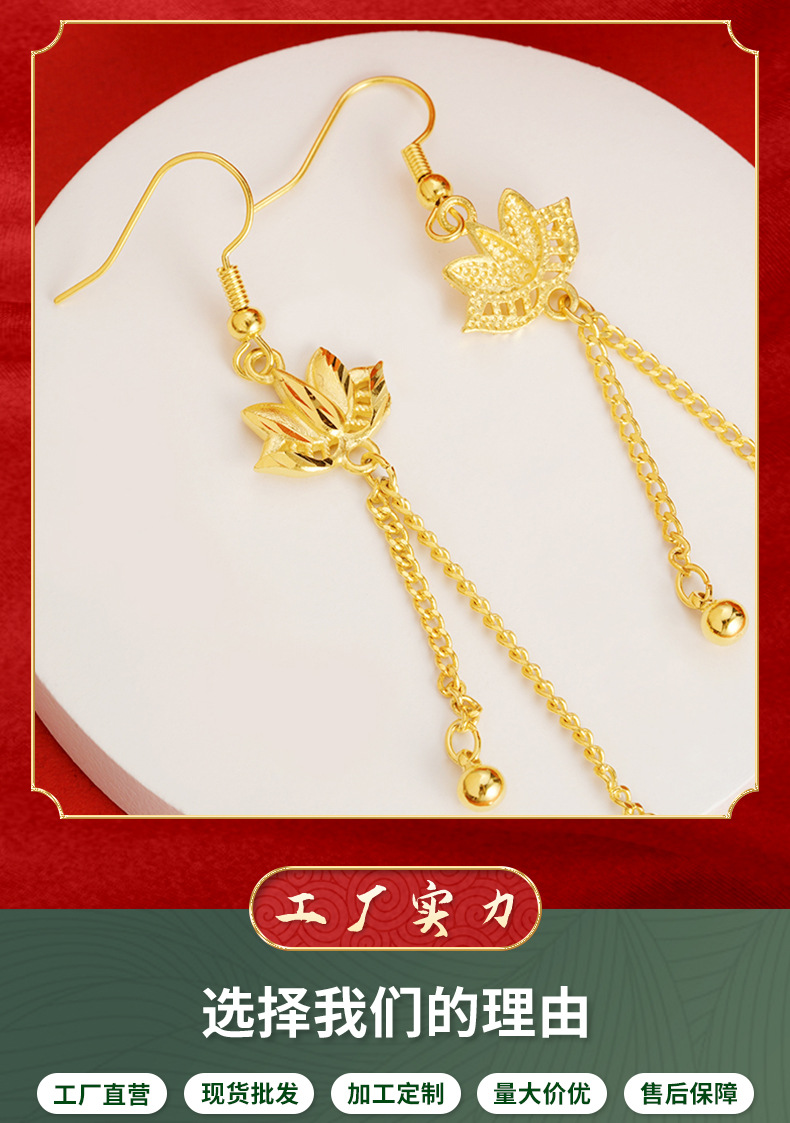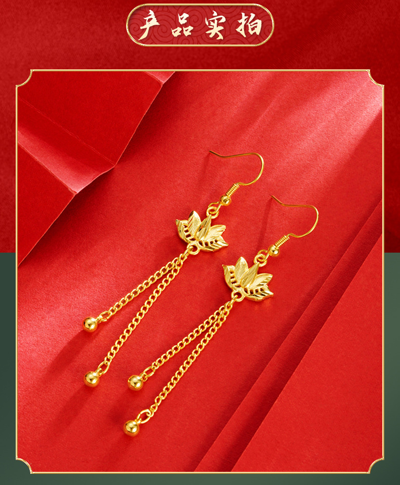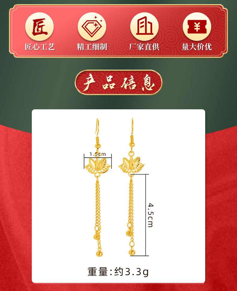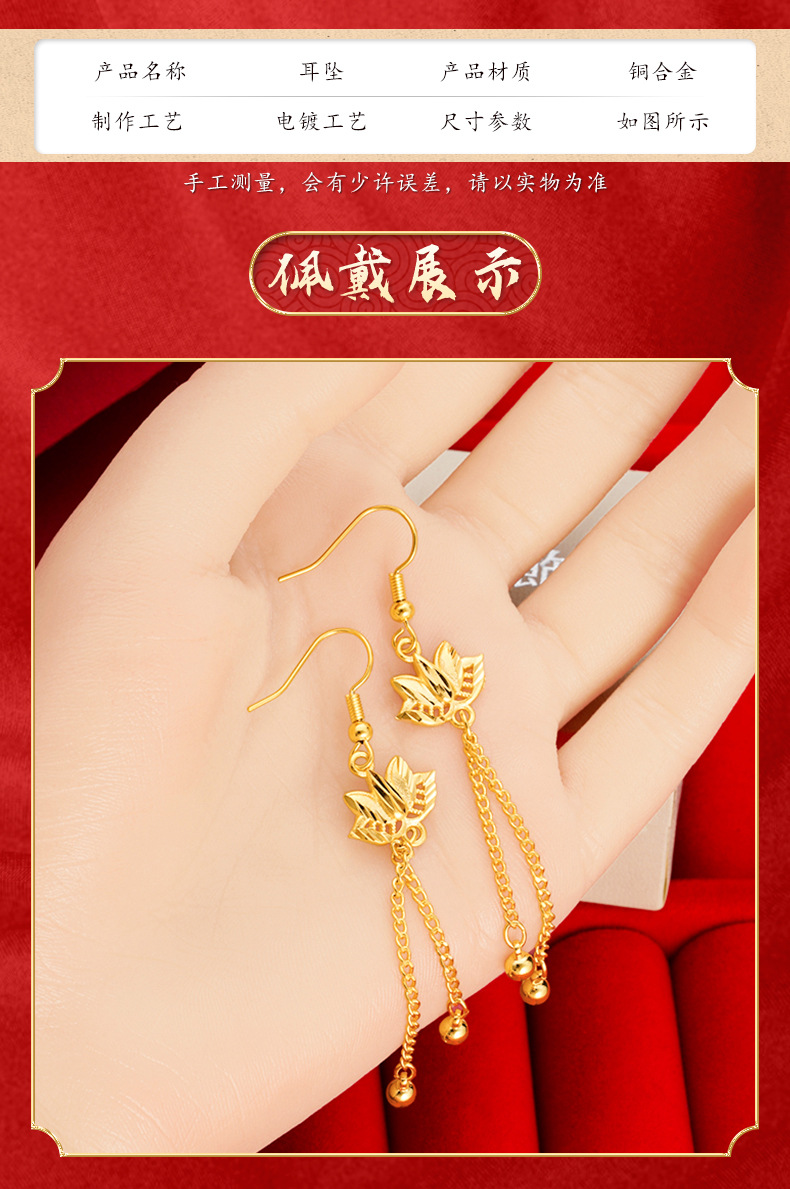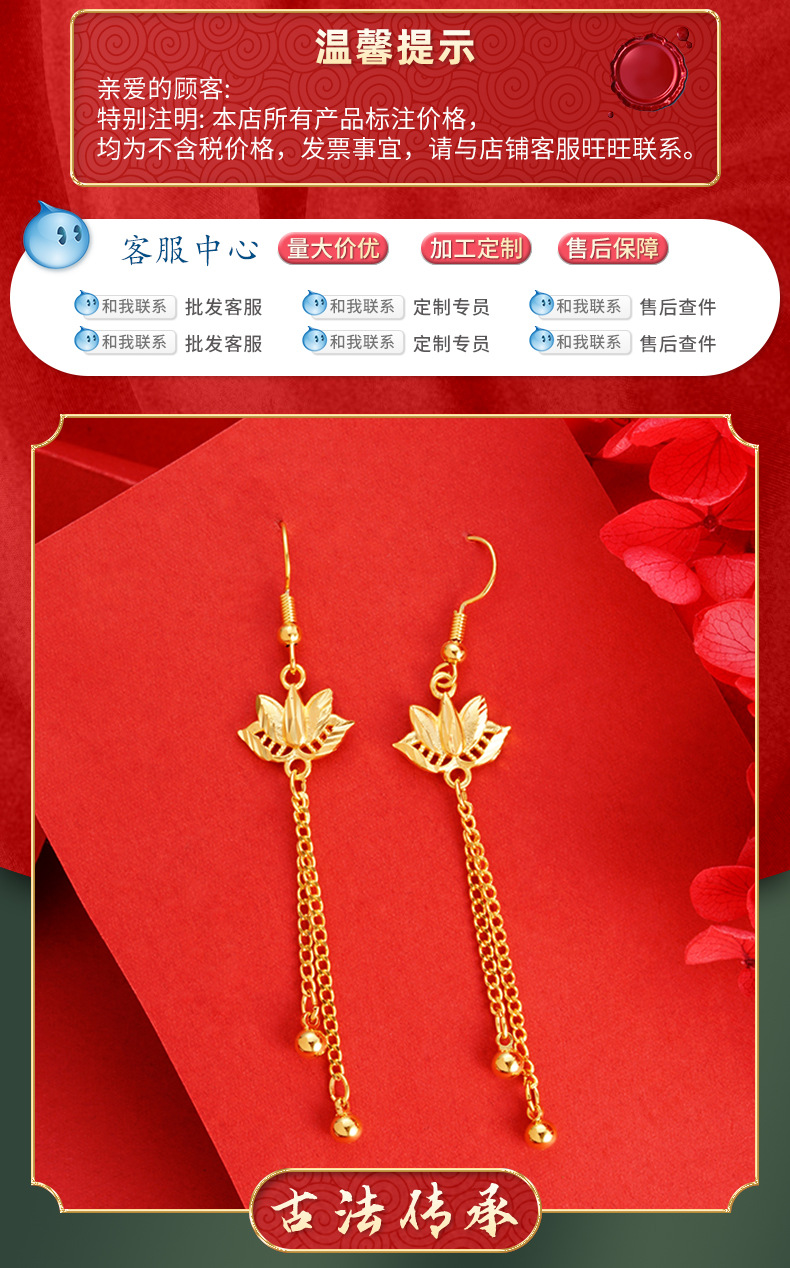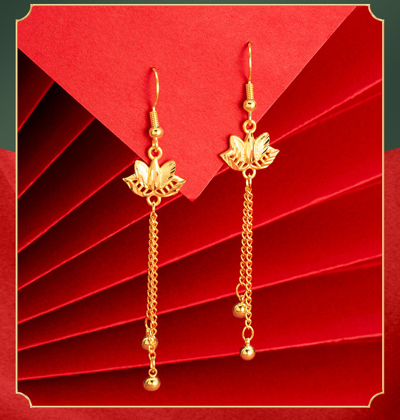 Pendientes de loto oro arena pendientes largos borla de las mujeres joyería de aleación de cobre Internet celebridad mismo suministro pendientes de estilo chino