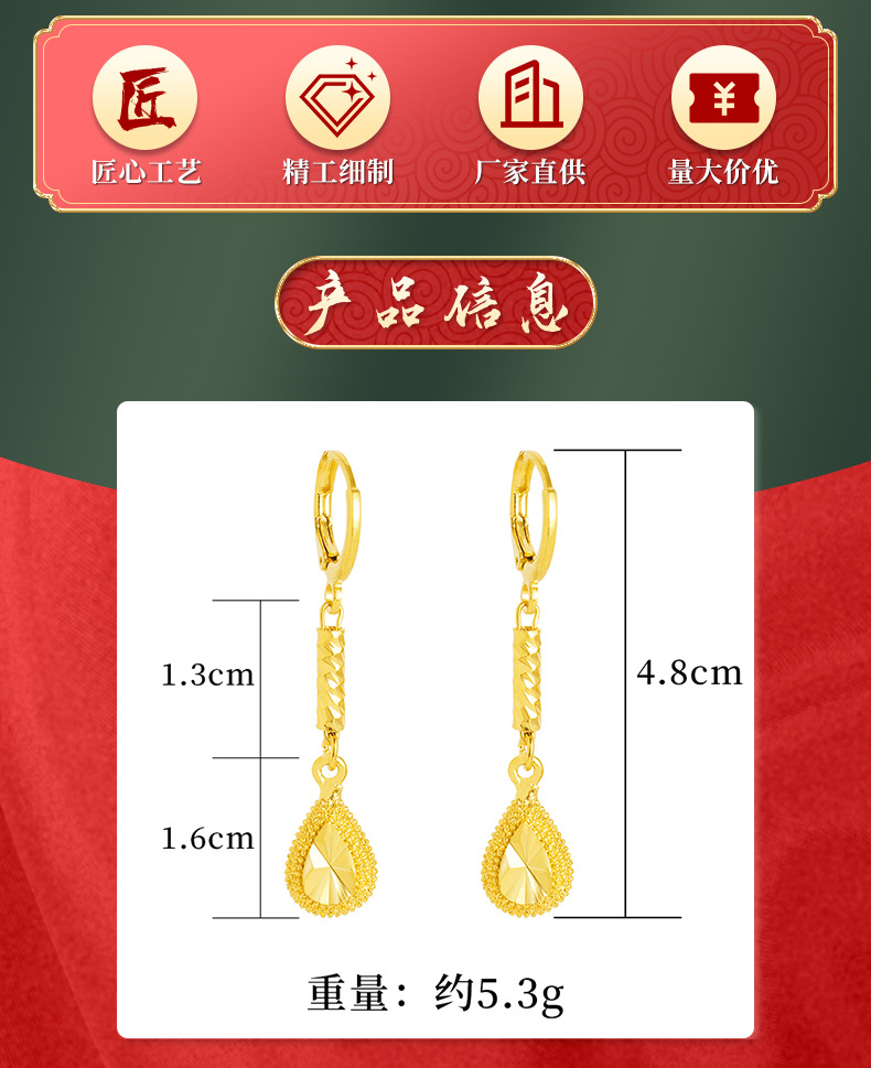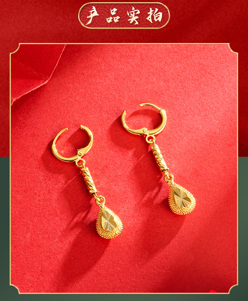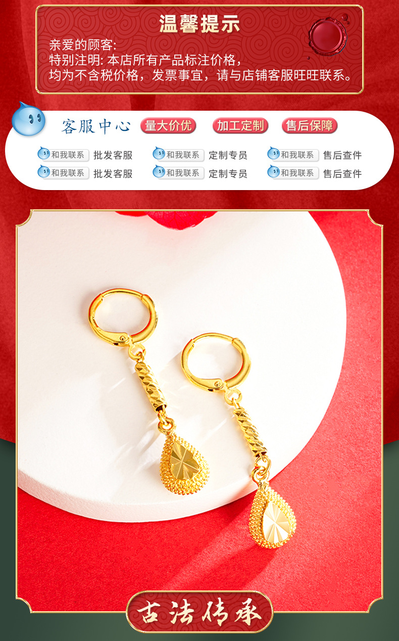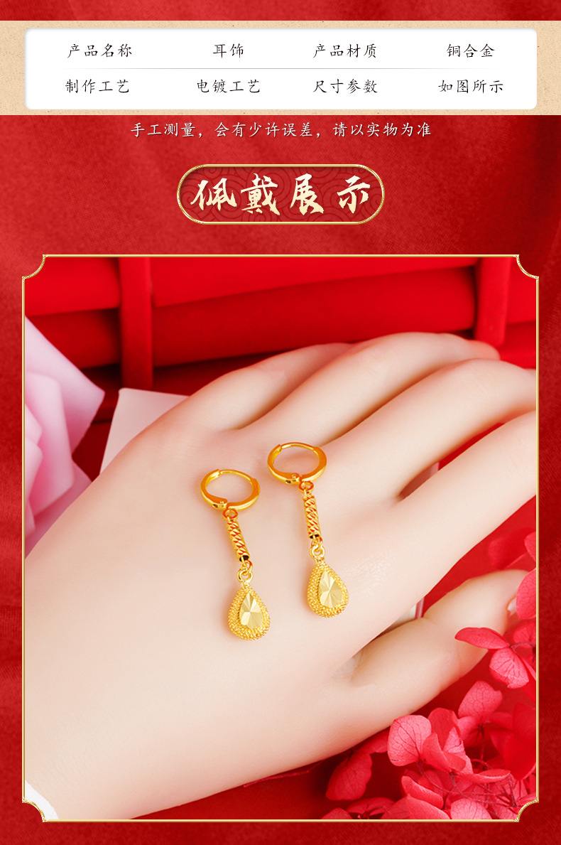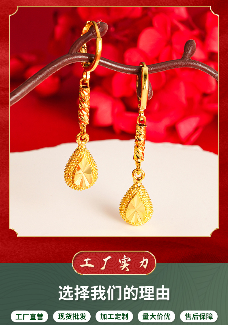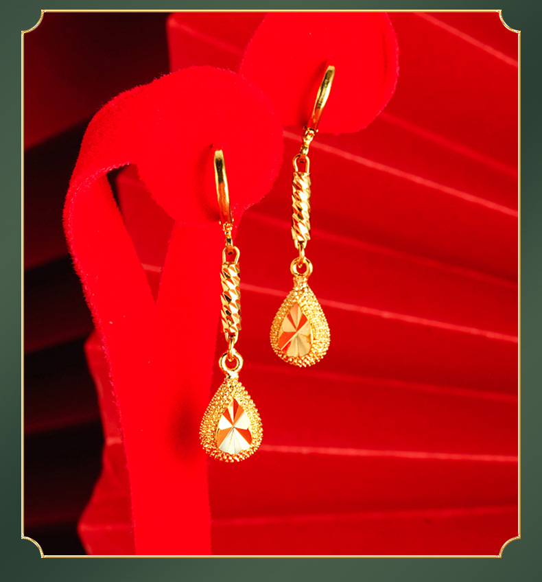 Pendientes de gota de Agua de Oro de imitación de aleación de cobre de las mujeres elegantes artesanía antigua Arena de Vietnam pendientes de oro al por mayor joyería de estilo chino