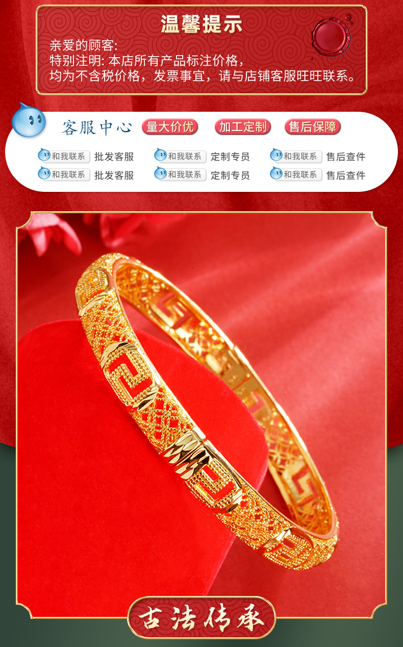 Estilo chino oro hueco hebilla pulsera patrón de espalda antigua artesanía hombres y mujeres chapado en oro TikTok vivo caliente al por mayor