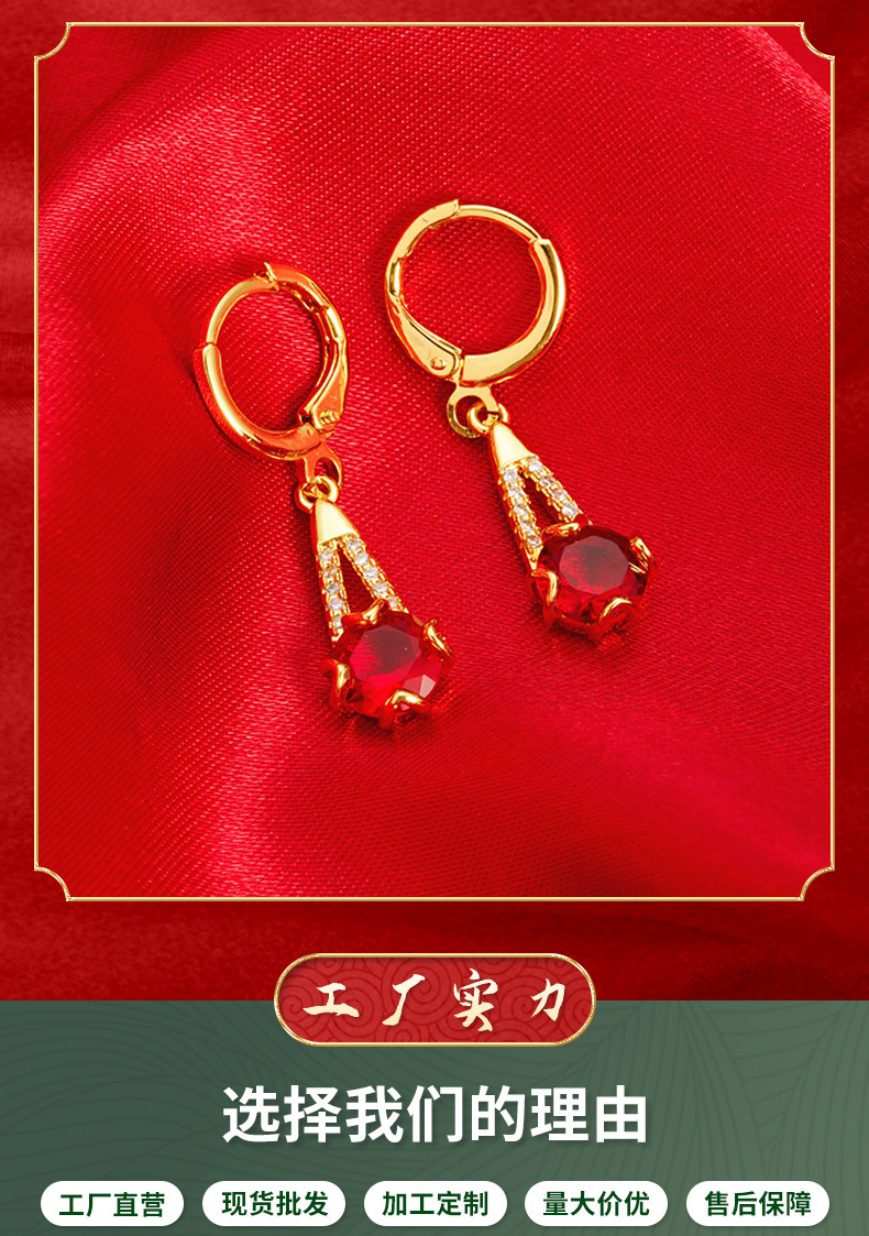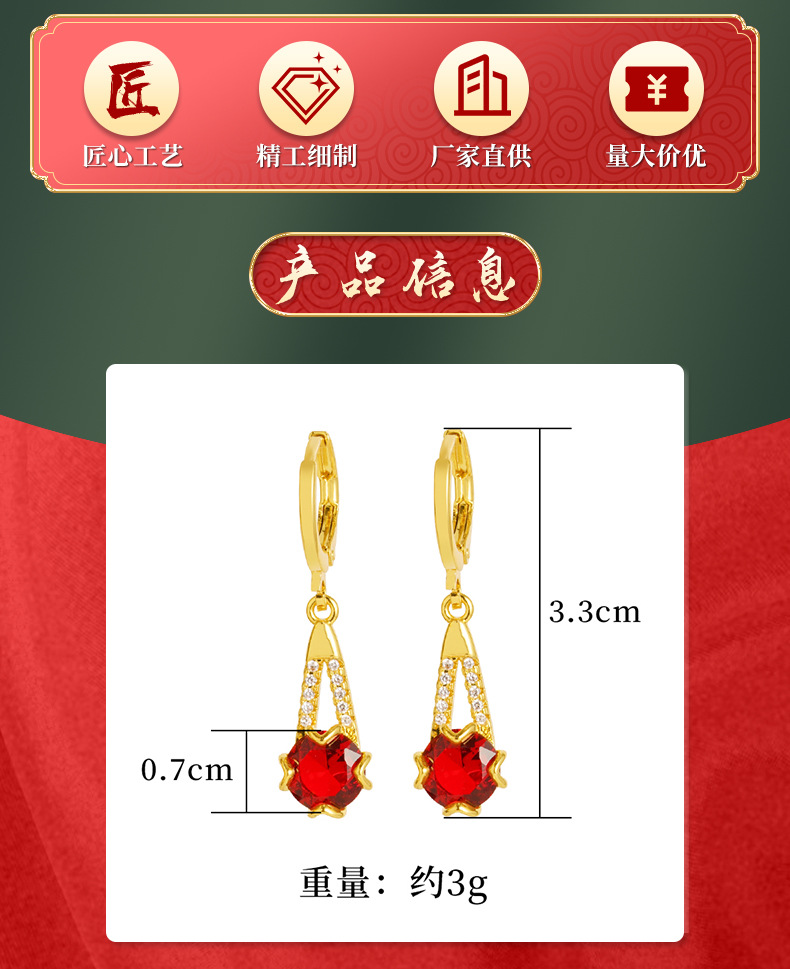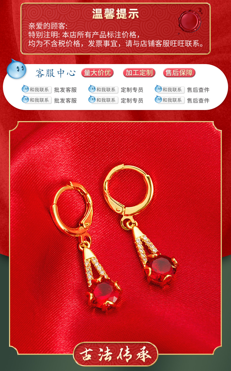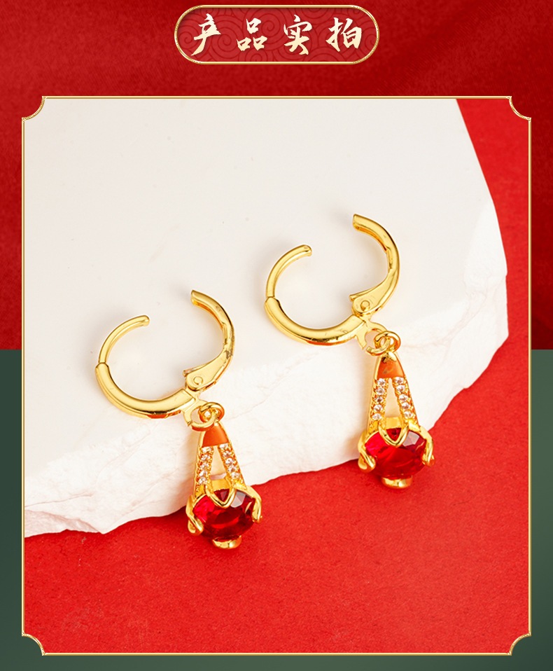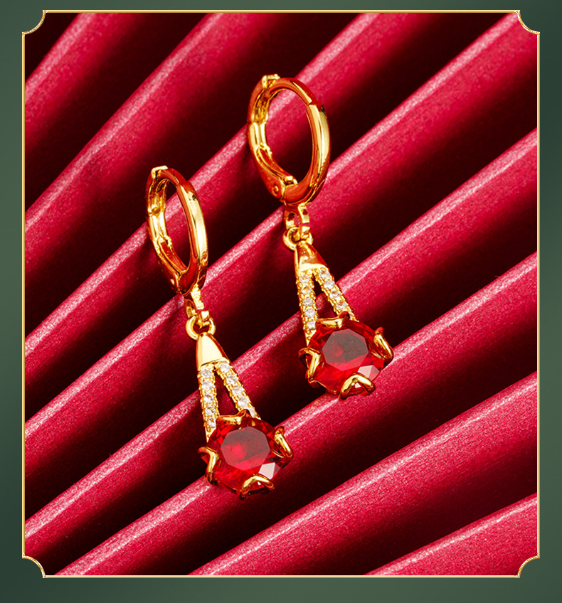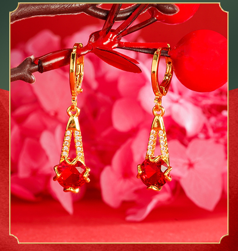 Pendientes de oro de Vietnam en forma de V pendientes de las mujeres de piedra roja de diamantes incrustados de alta calidad de diseño Pequeño Libro Rojo mismo suministro