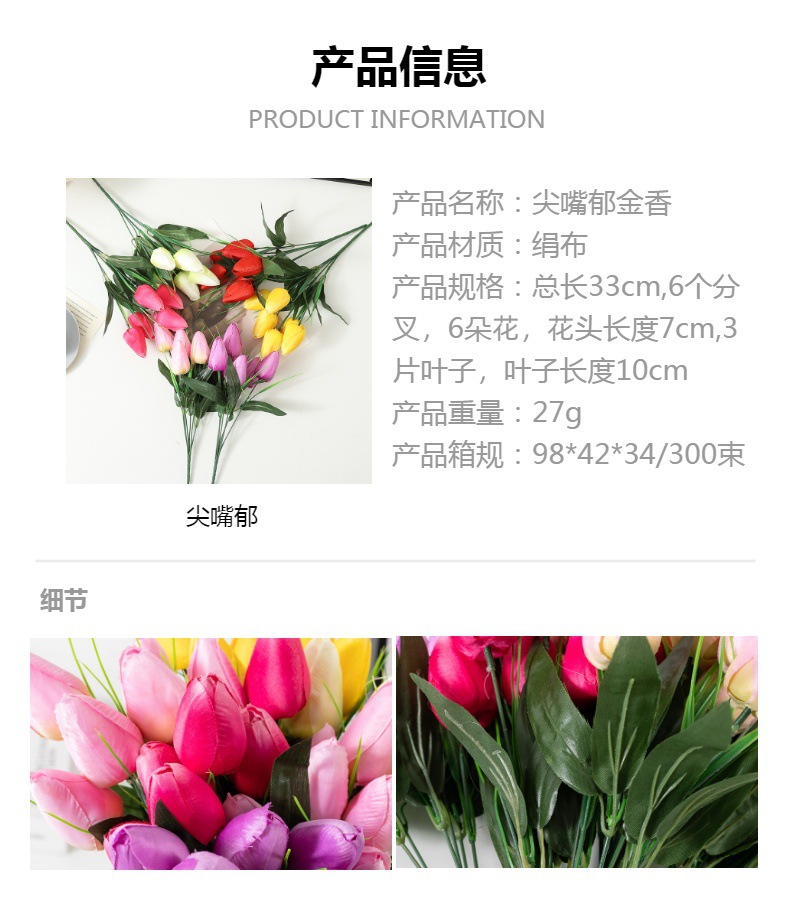 Tulipán flor artificial 6 señaló boca tulipán ramo de flores falsas boda decoración del hogar fotografía Flor al por mayor
