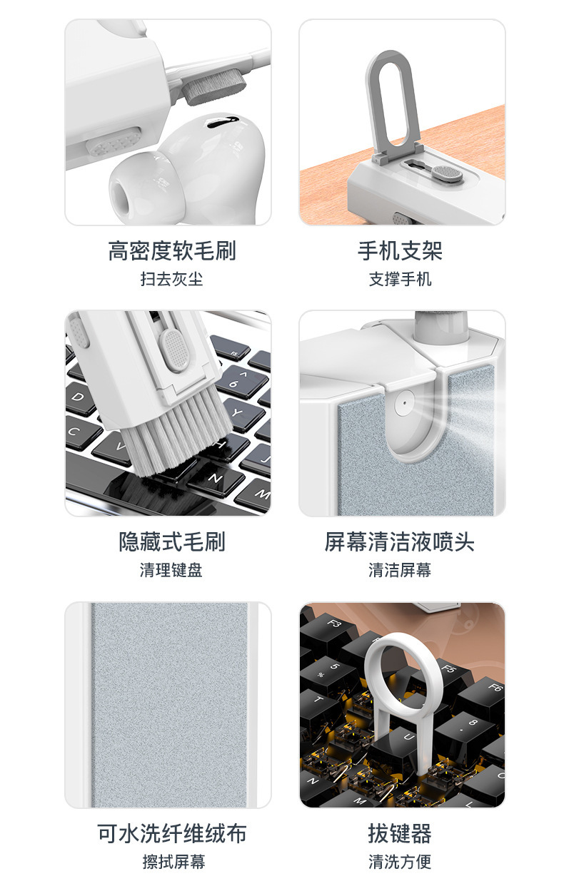 Modelos calientes transfronterizos múltiples funciones teléfono móvil pantalla de la Cámara teclado de la computadora Herramientas de limpieza auriculares Bluetooth traje de limpieza