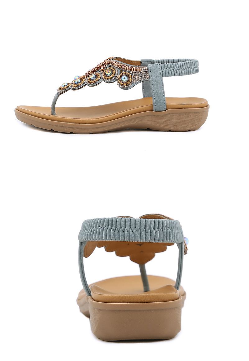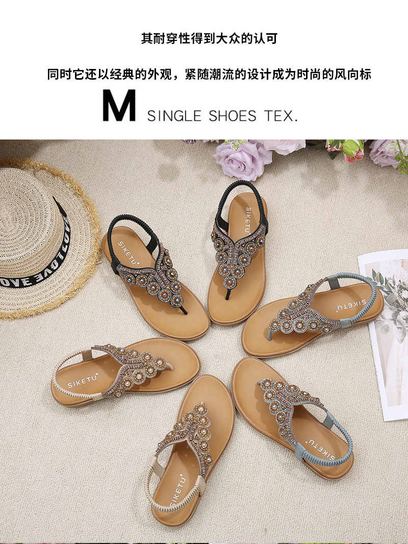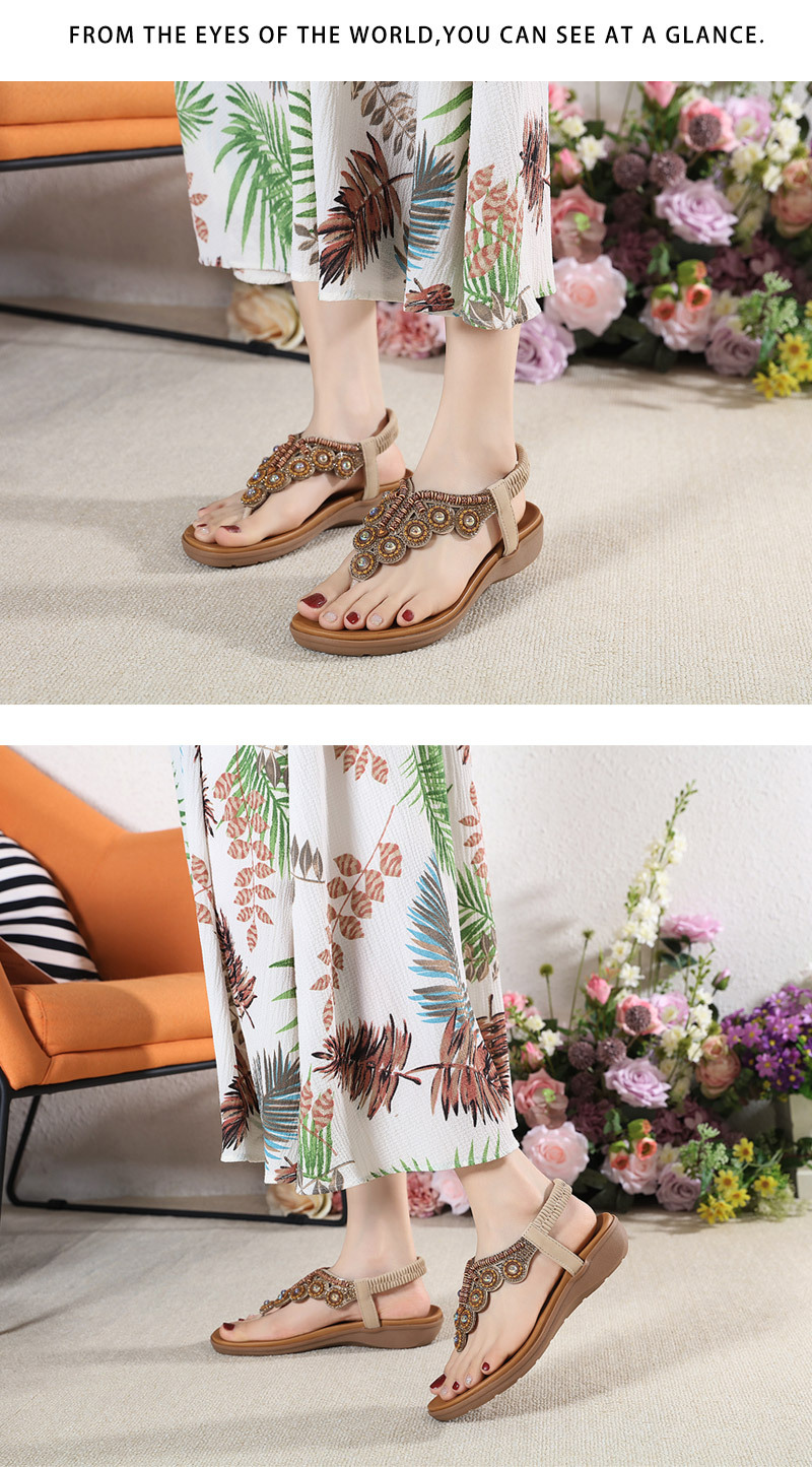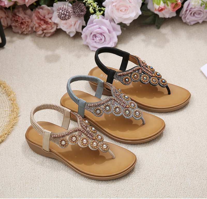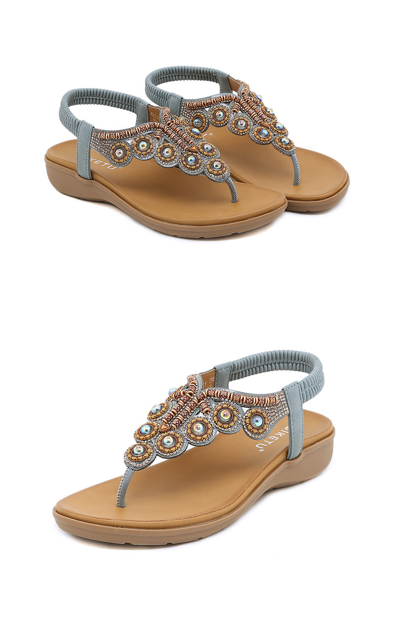 Sandalias de Verano 2025, Estilo Bohemio, con Adornos de Pedrería y Correa Elástica en el Talón, Zapatos de Mujer