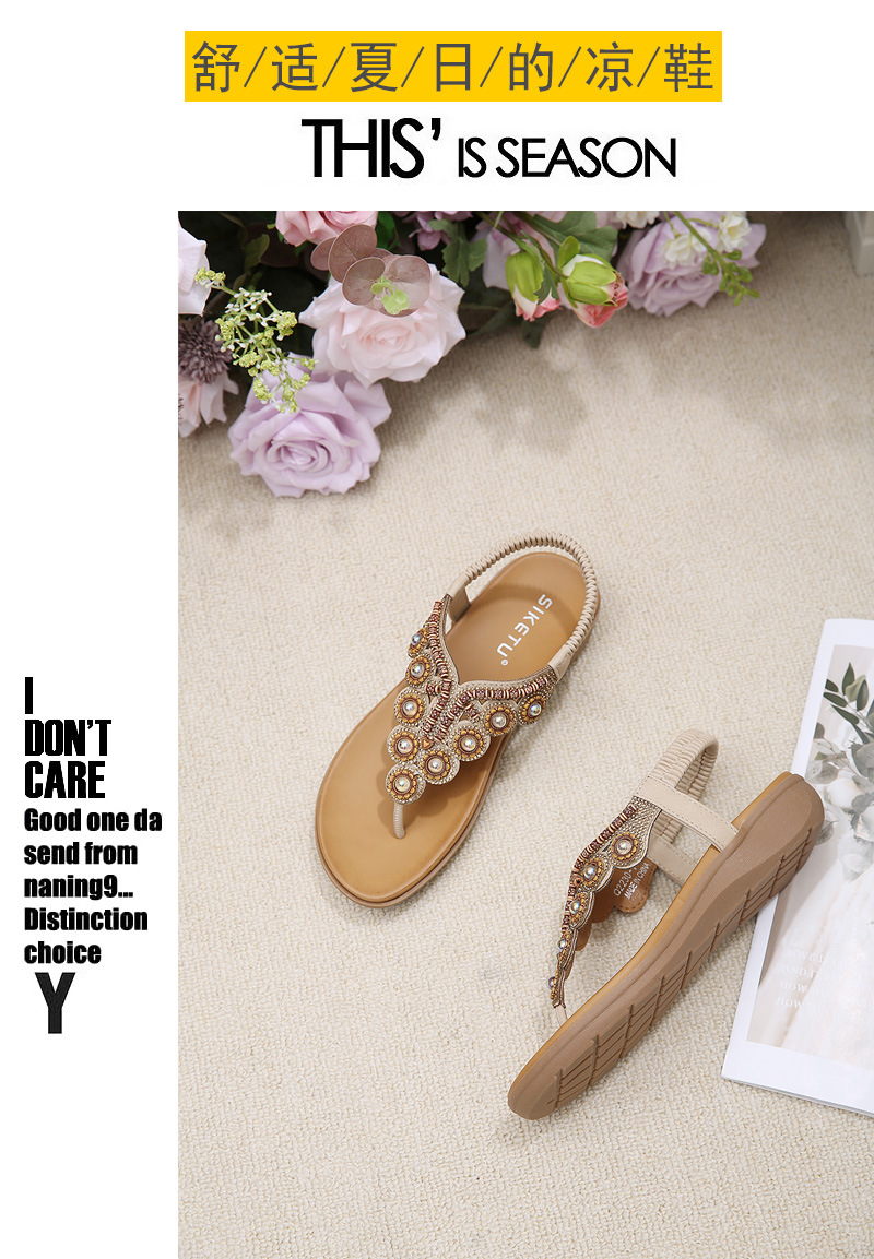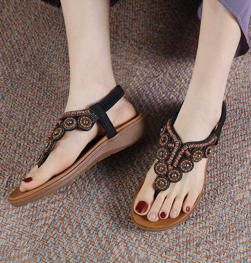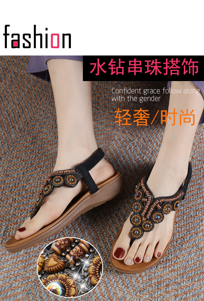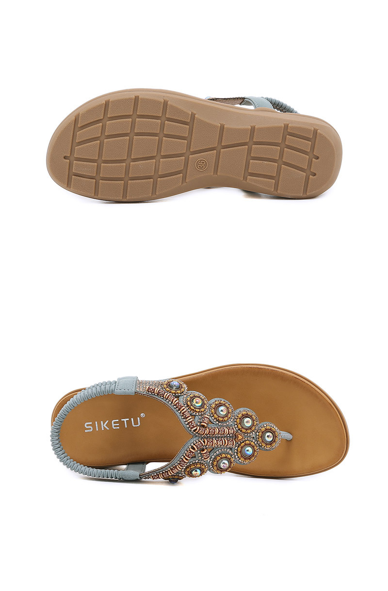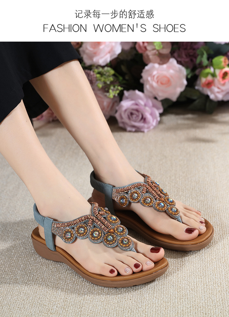 Sandalias de Verano 2025, Estilo Bohemio, con Adornos de Pedrería y Correa Elástica en el Talón, Zapatos de Mujer