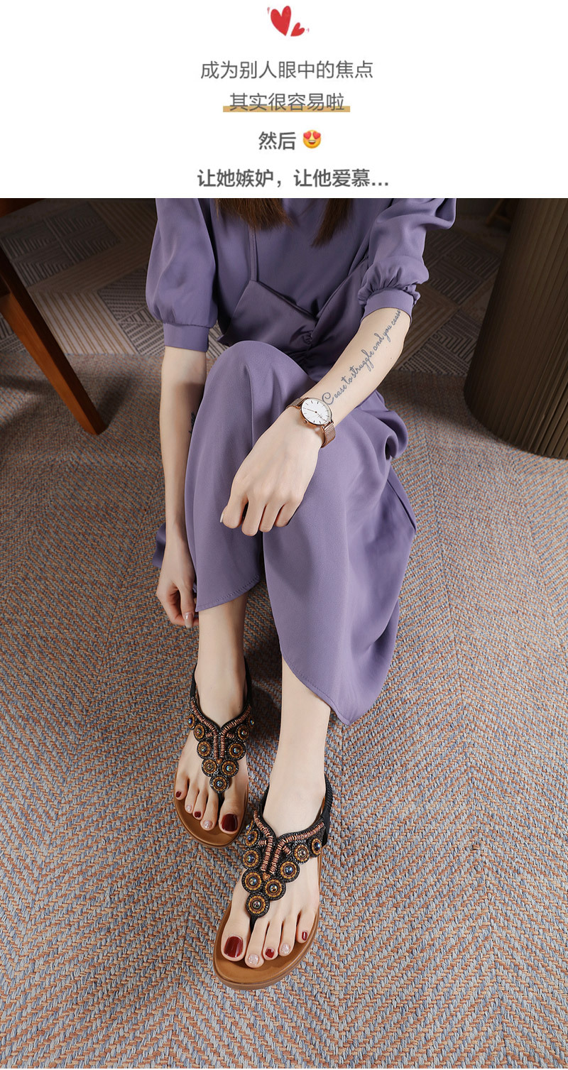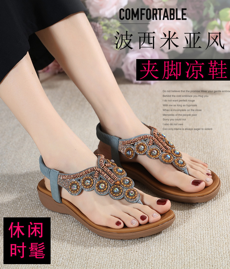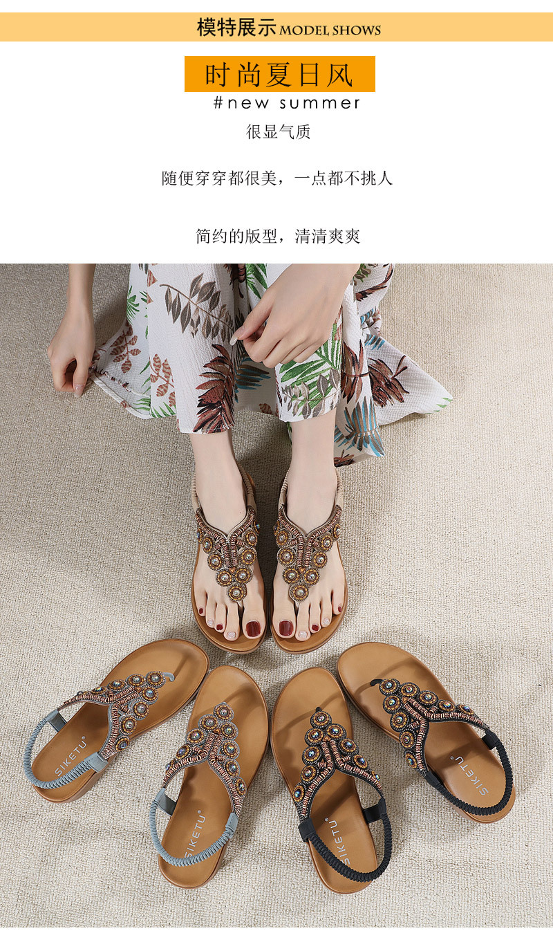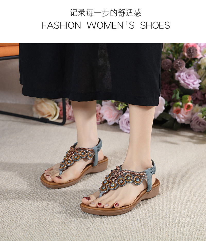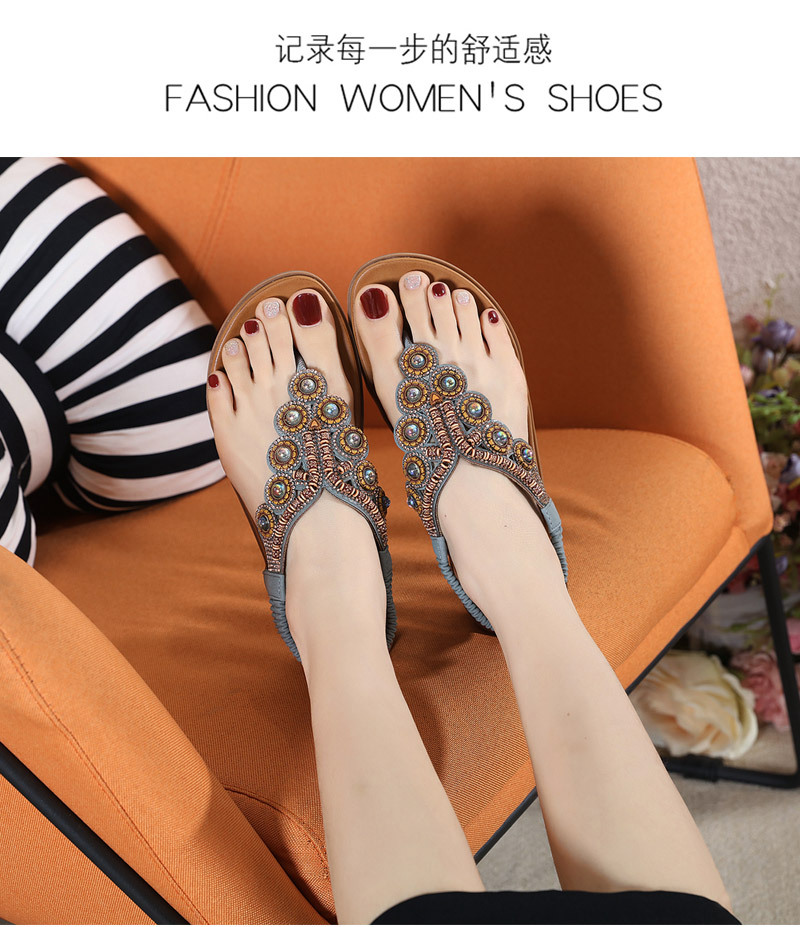 Sandalias de Verano 2025, Estilo Bohemio, con Adornos de Pedrería y Correa Elástica en el Talón, Zapatos de Mujer