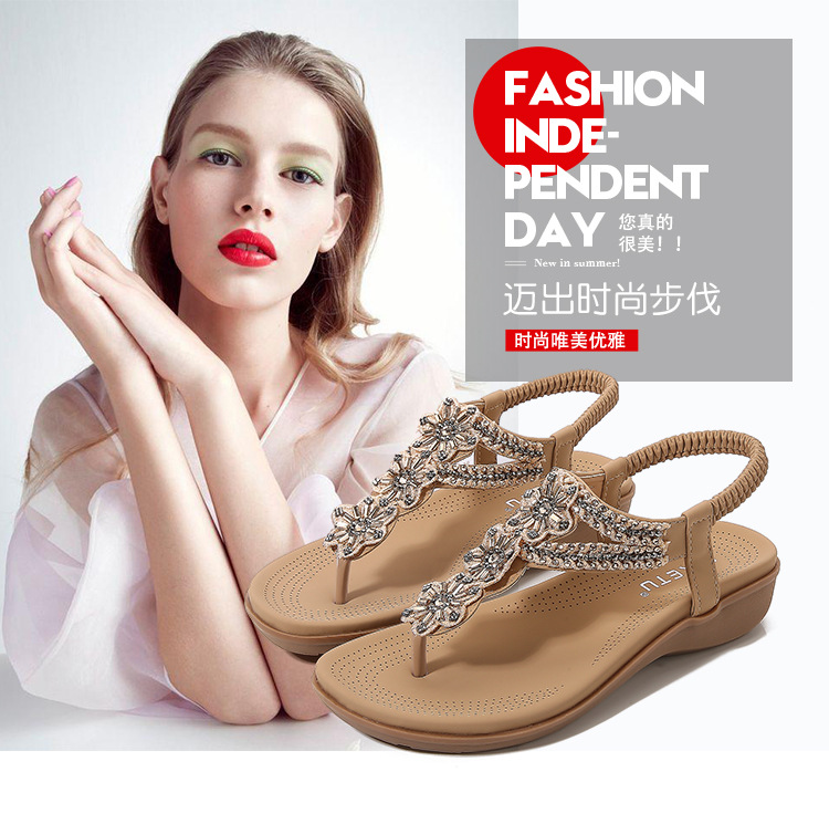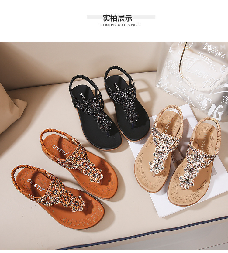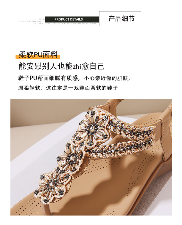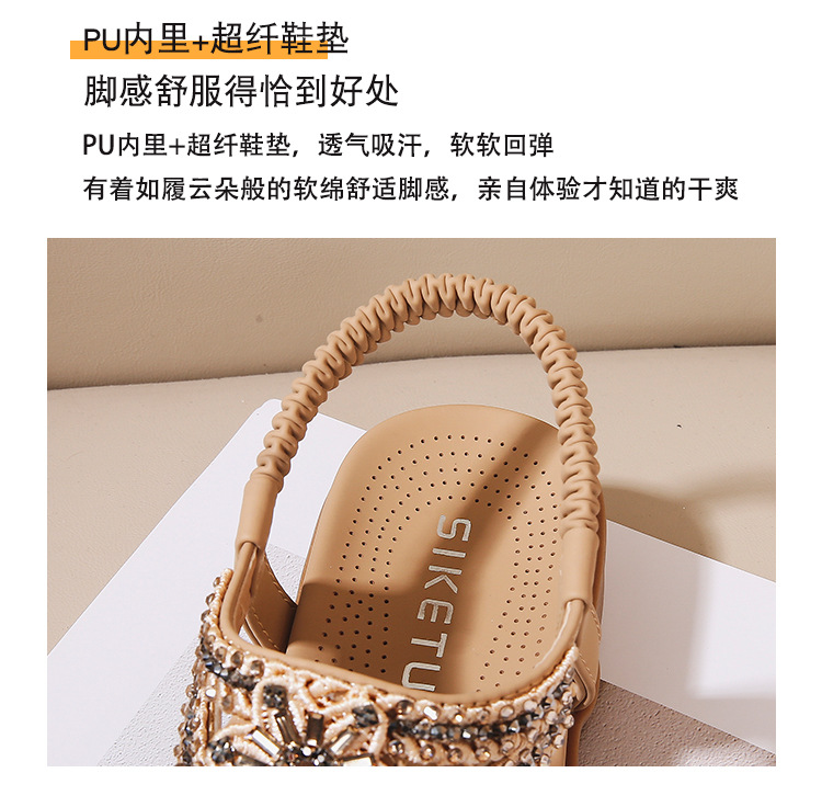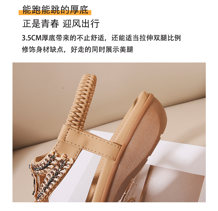 Sandalias de cuña de playa para mujer, estilo retro europeo y americano, con pedrería, suaves y cómodas, para vacaciones de verano 2025
