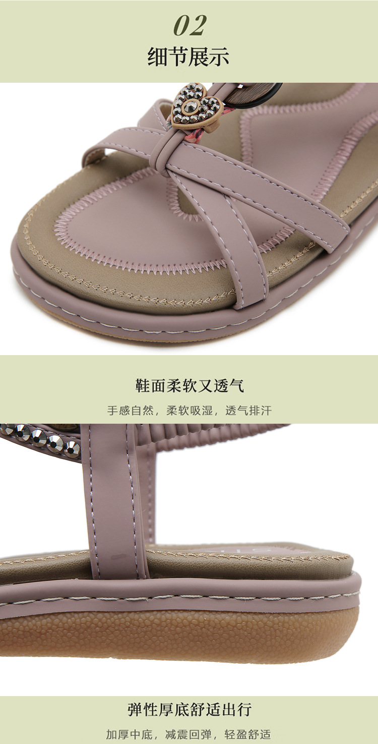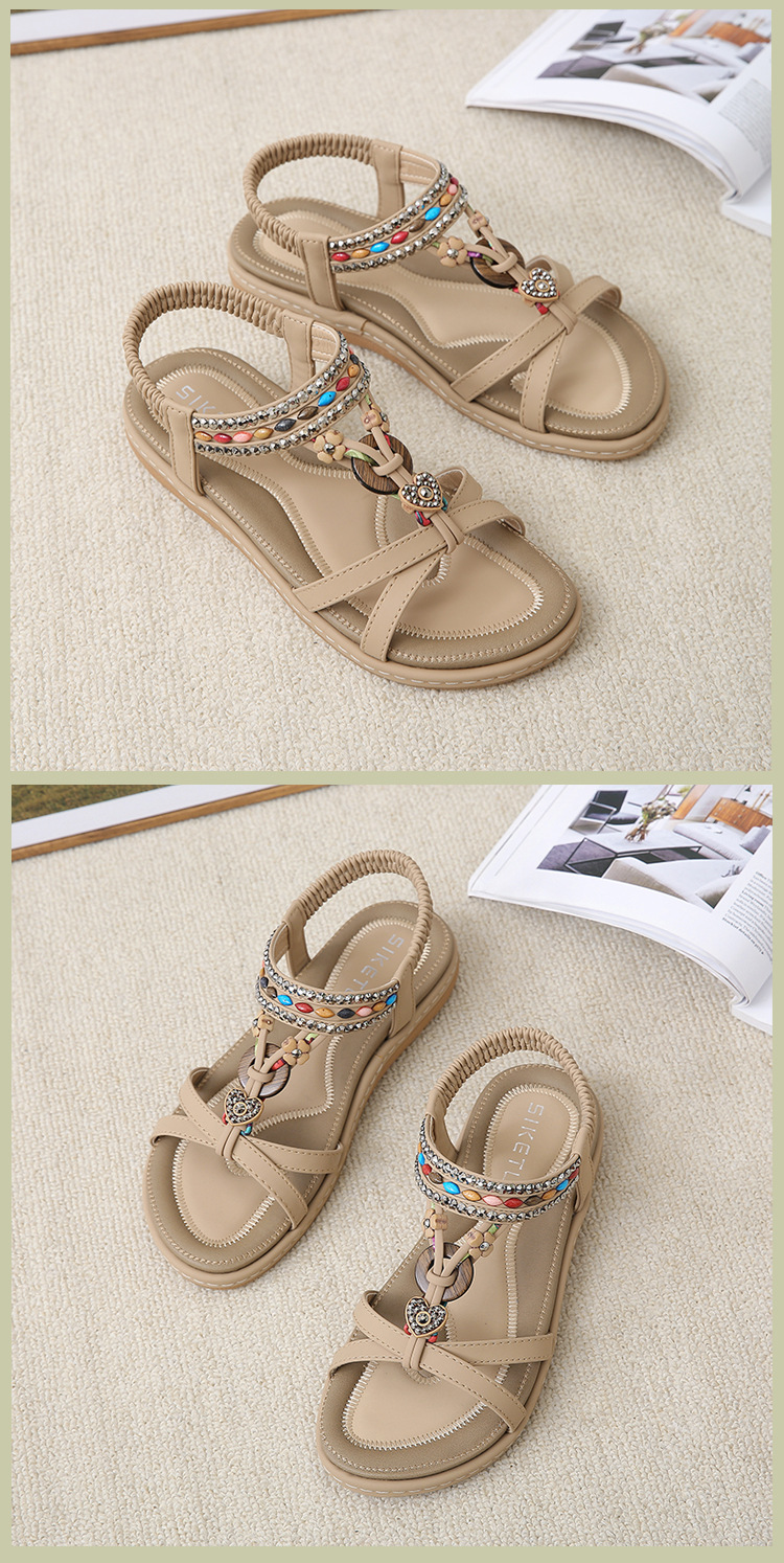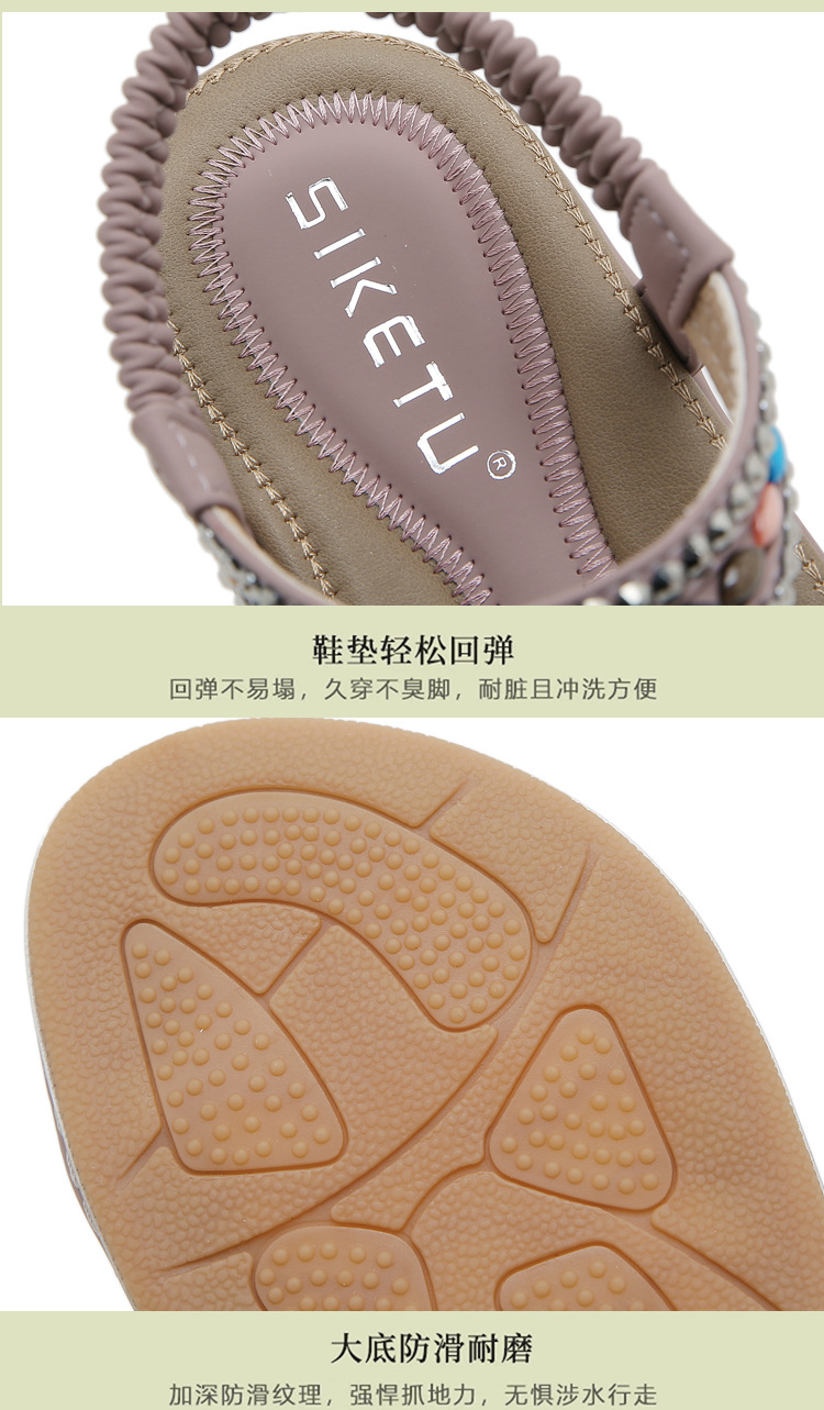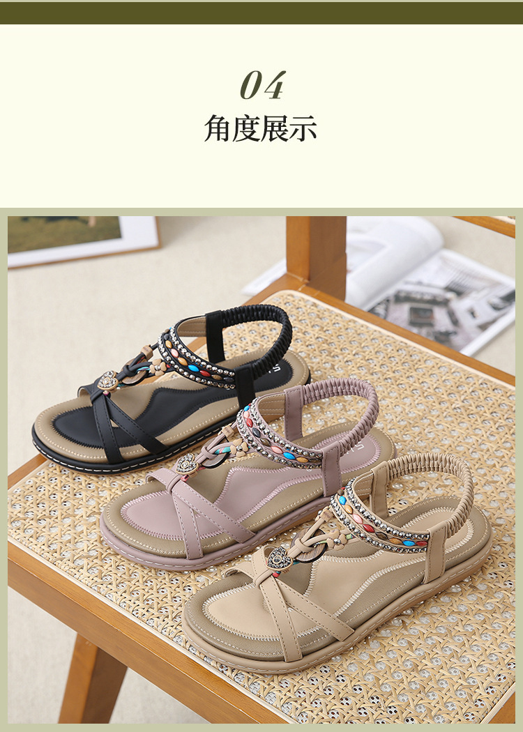 W676-4 Nuevo 2024 primavera y verano cuentas de madera hebilla rhinestone moda casual Tailandia playa Sandalias planas para las mujeres